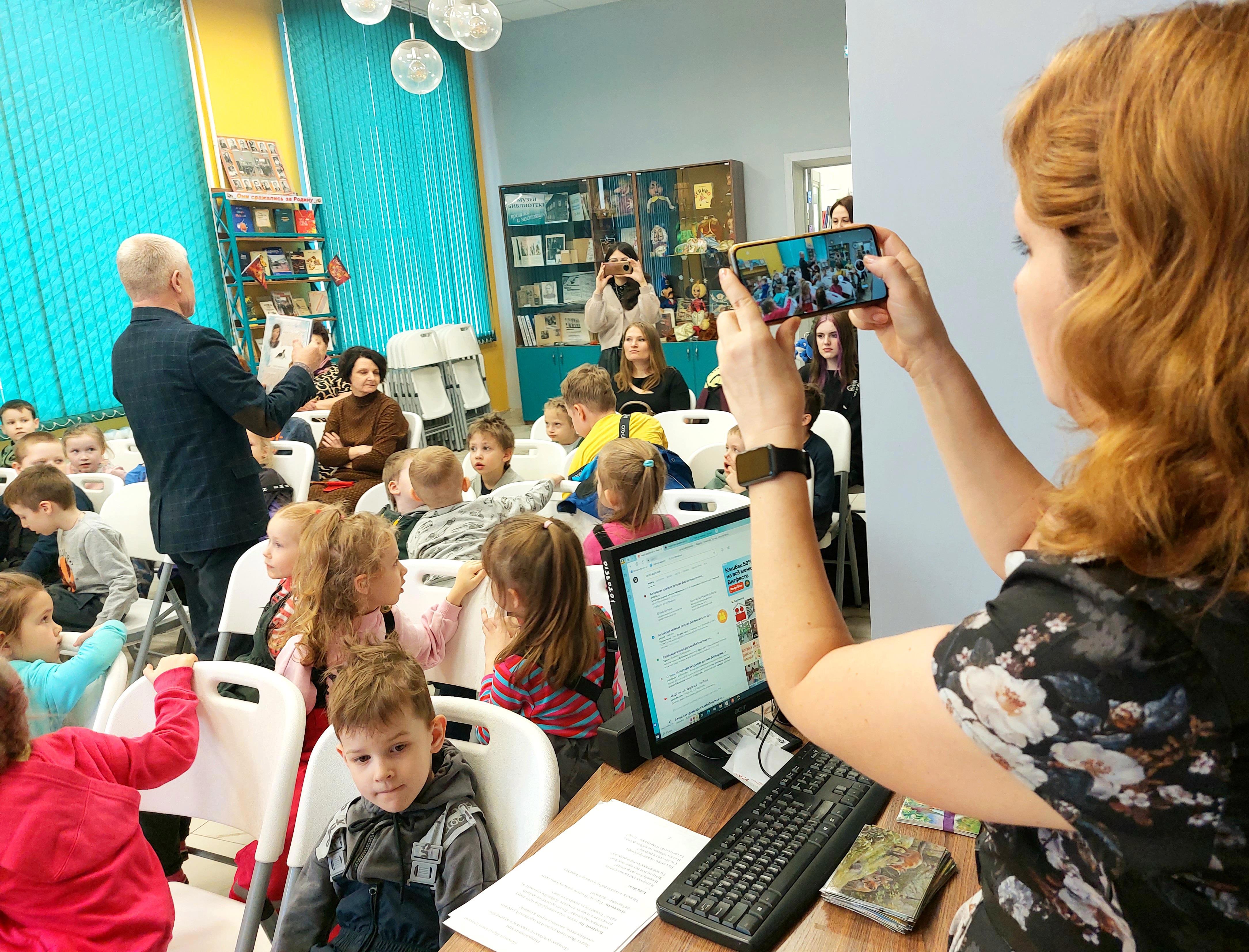 Зал был заполнен маленькими читателями, которые с воодушевлённо слушали автора