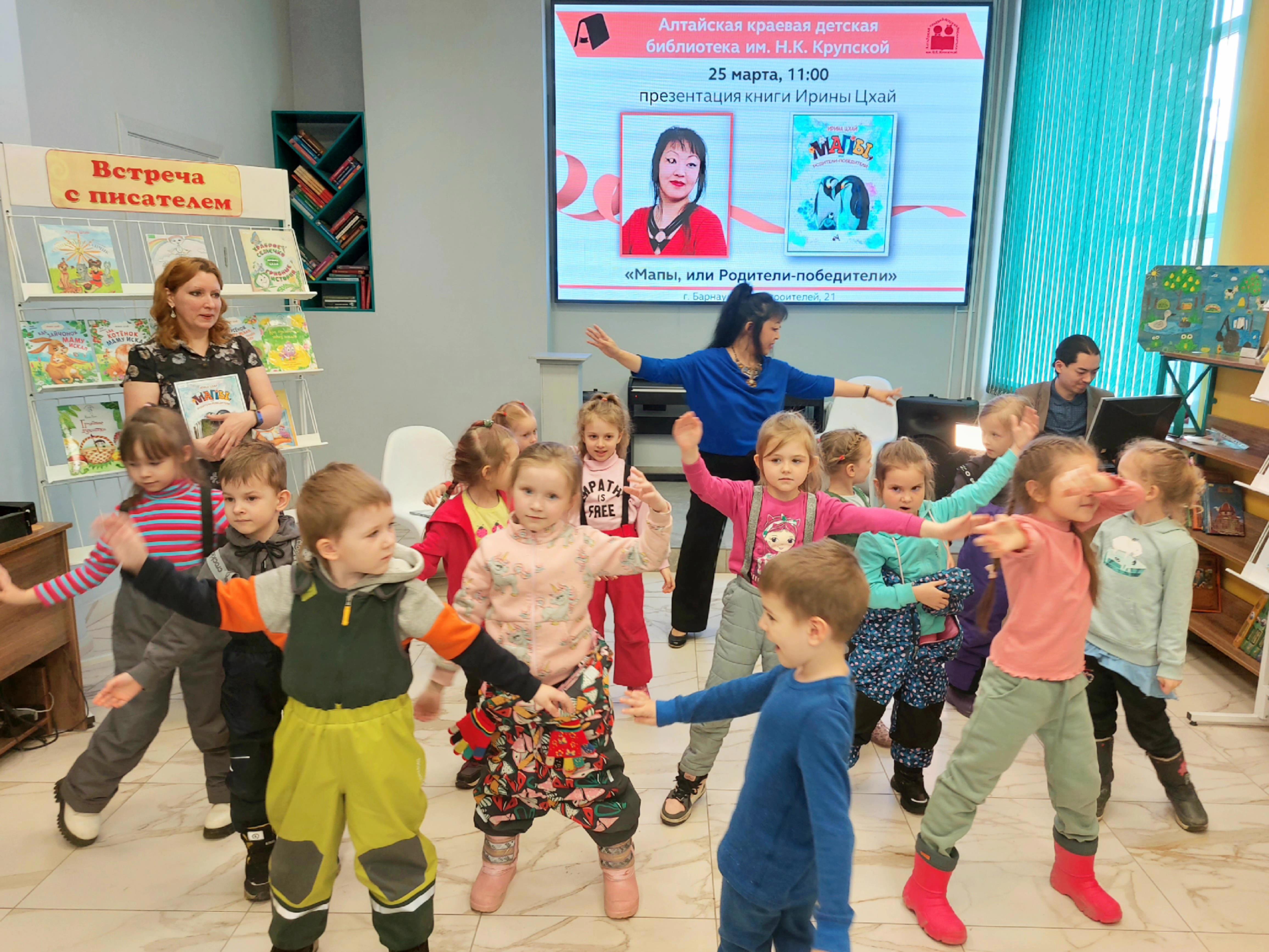 Детки наперебой отвечали на вопросы, а также их задавали, отбивали ритм стихов шагами вместе с автором - Ириной Цхай, дошло даже до всеобщих танцев, автографов и памятных фото...