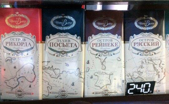 Гости Владивостока могут изучать эту линейку островов по популярной серии шоколадок производства местной кондитерской фабрики.