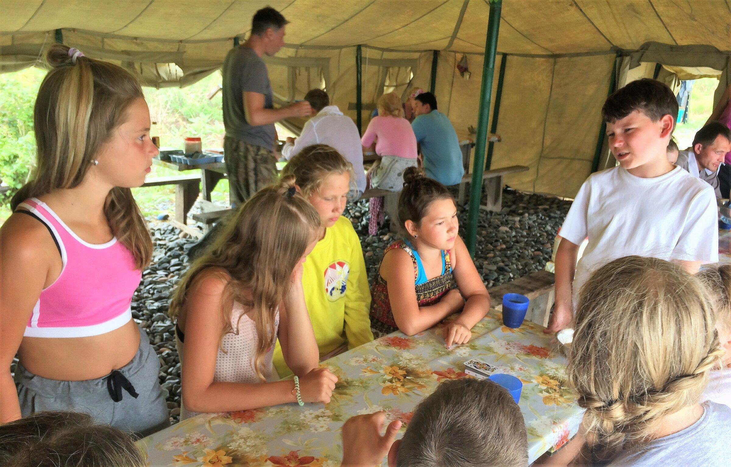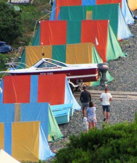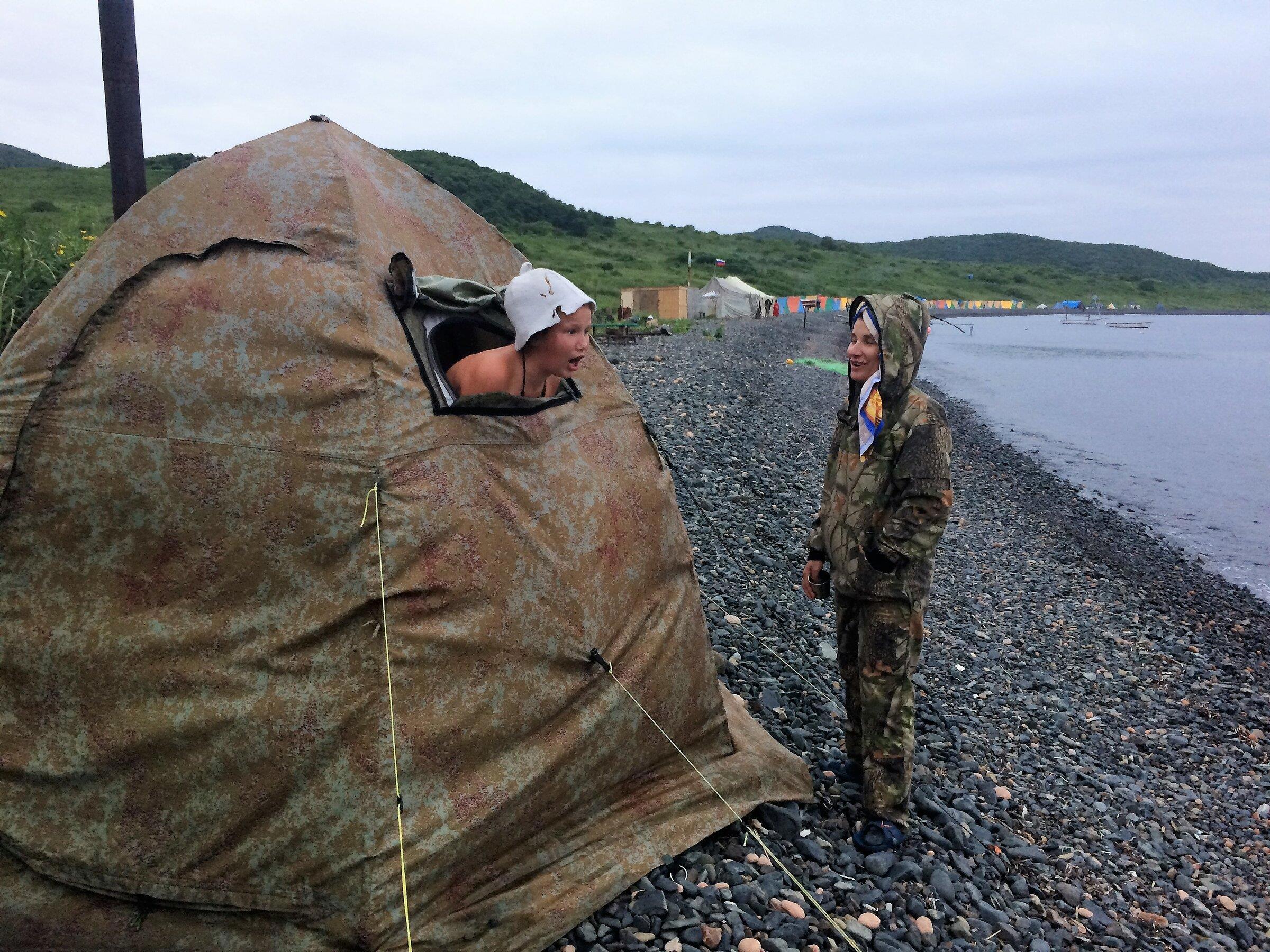 Это – палаточный лагерь. Там нет комфортабельных номеров, аниматоров, баров и диджеев. Там даже кроватей нет. Есть строй двухместных палаток на берегу, несколько туалетов и умывальников, столовая aka кают-компания, баня, медпункт и место для вечернего костра.
