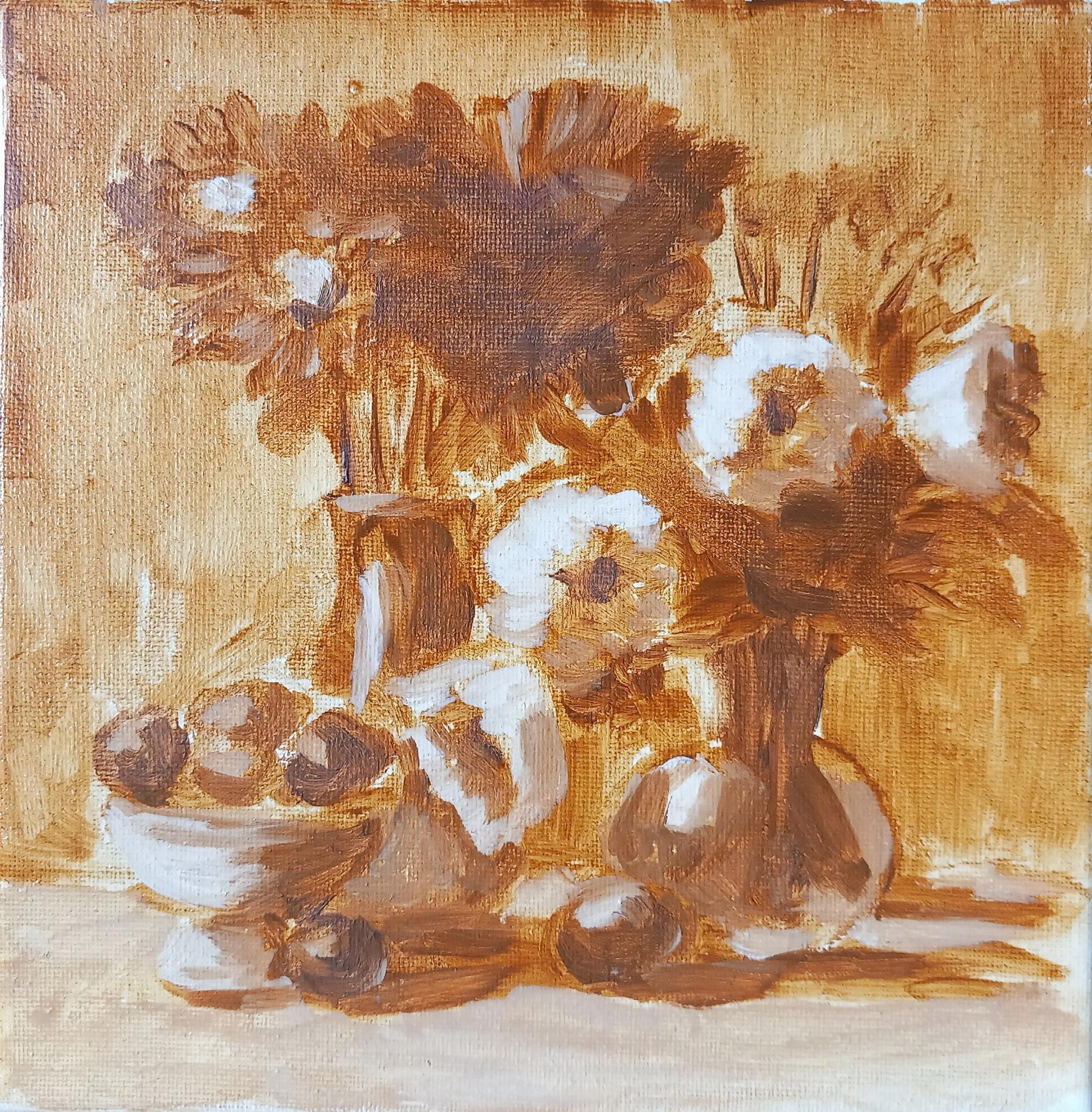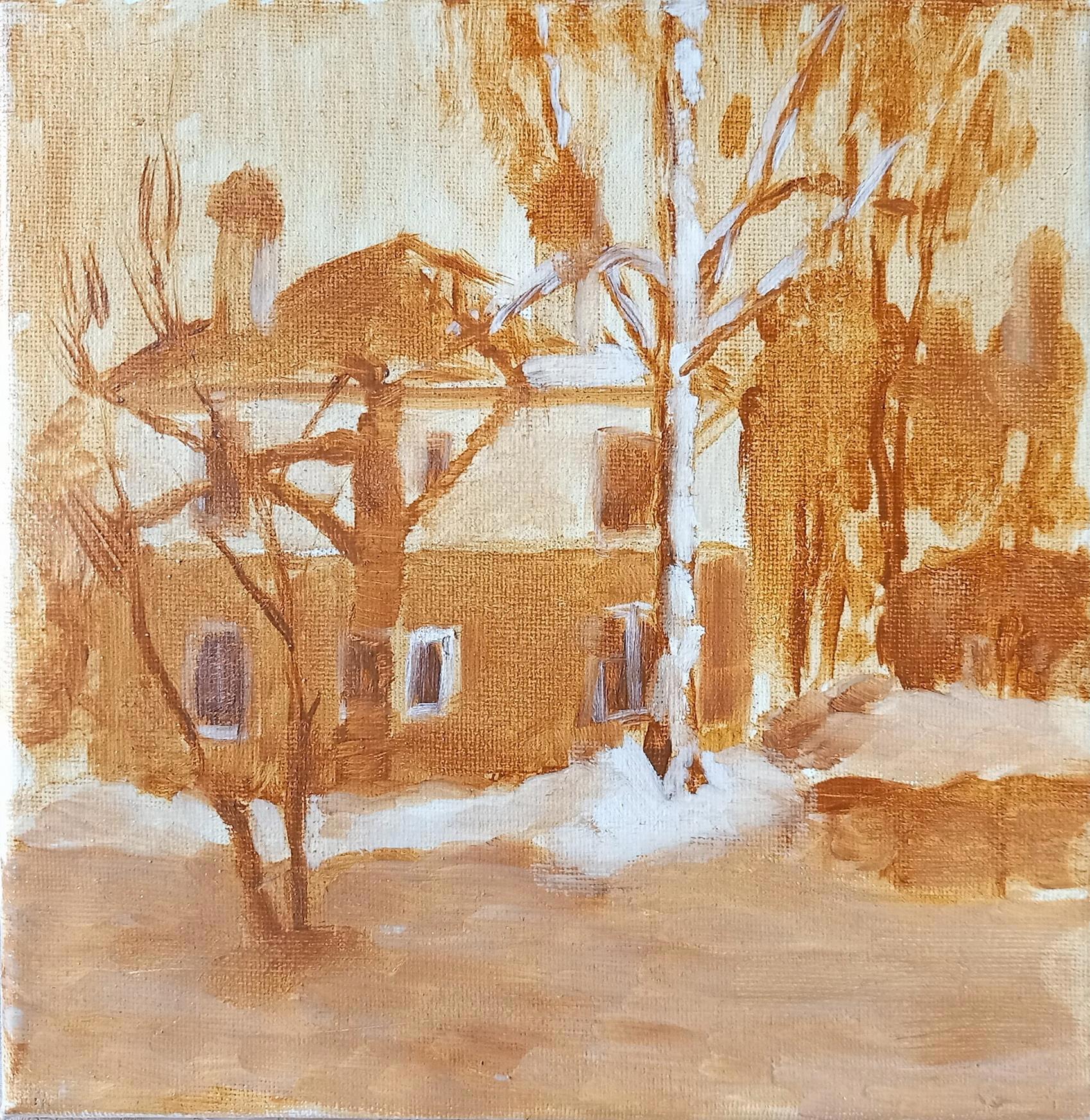Охра и сиена жжёная - земляные, природные краски. Написала ими, с небольшим добавлением на светлых местах титановых белил, несколько картинок для дальнейшей лессировки. Пока не могу представить, что из этого получится. Прохожу курс по лессировкам маслом у Елены Ненастиной. Страшно интересно.