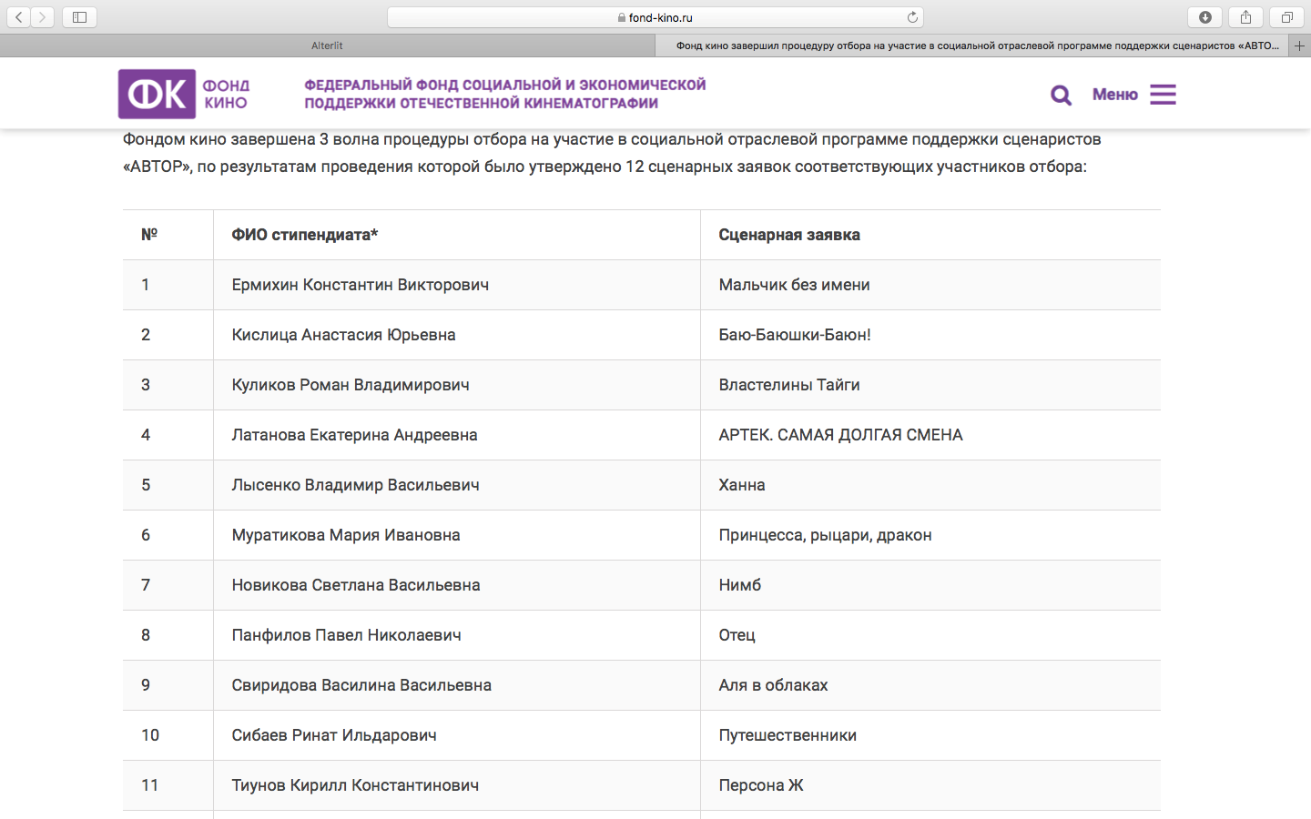 Автор: НематросВчера, 2-го апреля, Фонд Кино подвел результаты третьей волны социальной отраслевой программы поддержки сценаристов «АВТОР».