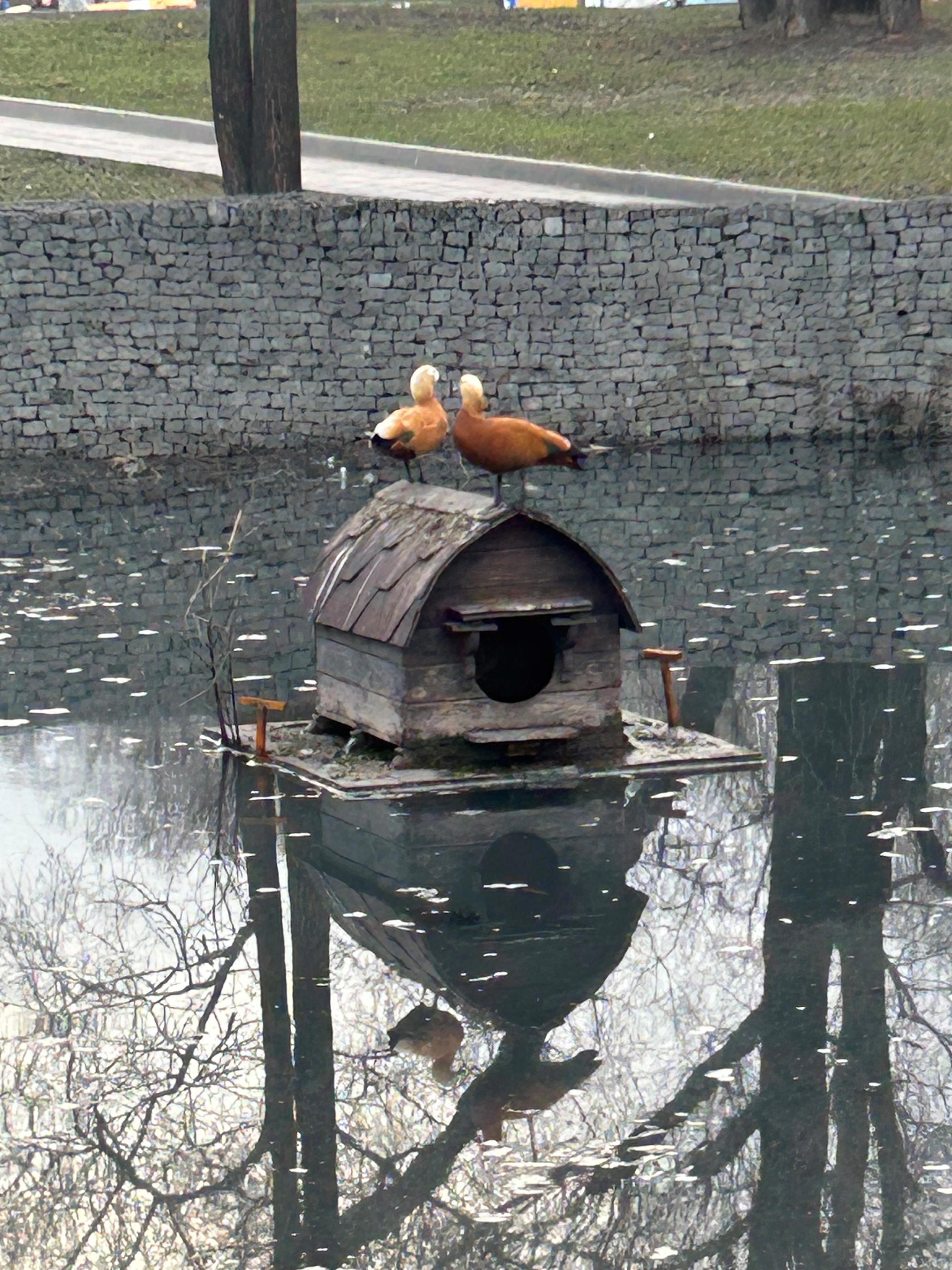Автор: SangoТеперь могу определенно утверждать что оранжевые птицы будут селиться на прудике как и в прошлом году. Запечатлел их в понедельник, сидящими на крыше домика…