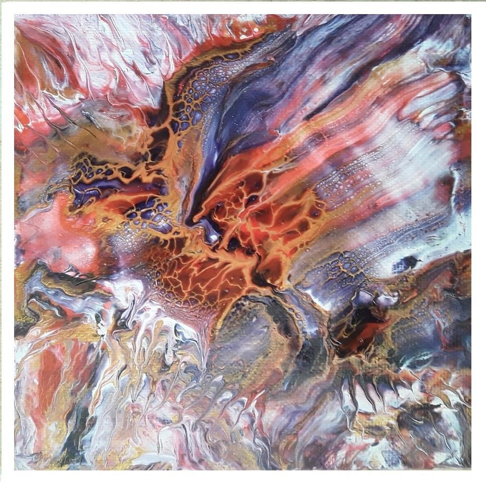 Серия «Истории огня», номер в серии: № 3. Литьевой акрил, лак. 10*10 см. Возможна заливка эпоксидной смолой. Стоимость 500 руб+доставка. Также можно приобрести другие картины (каталог по запросу в ЛС)