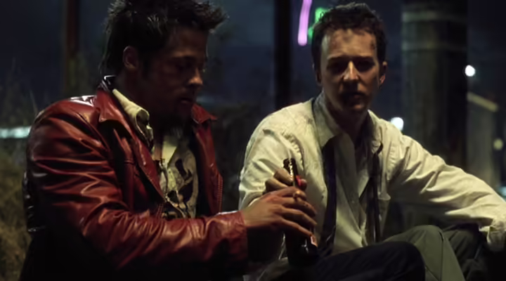 Все ускоряется, ты не успеваешь следить. Лицо Эдварда Нортона разбивается о бетонный пол. Вы с парнем оба голые ниже пояса.