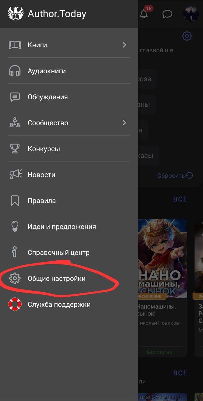 Жмем на три полосочки слева-вверху. У нас откроется контекстное меню слева. В нем выбираем пункт «Общие настройки».