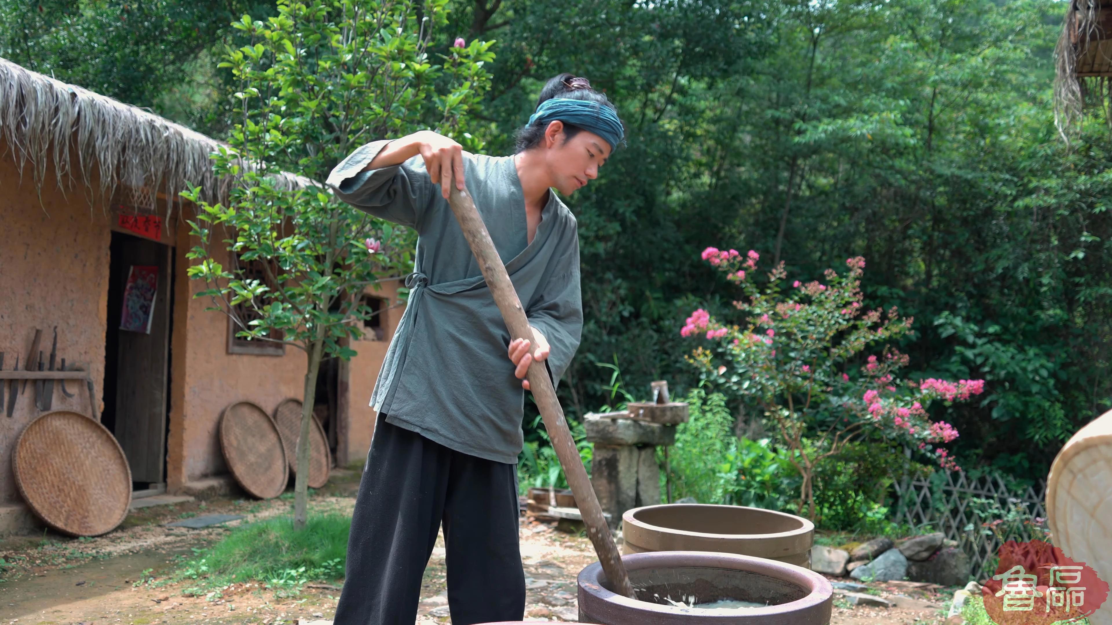 Милый работящий юноша покажет вам весь процесс изготовления краски из травы лань (蓼蓝 - горец красильный или китайское индиго)