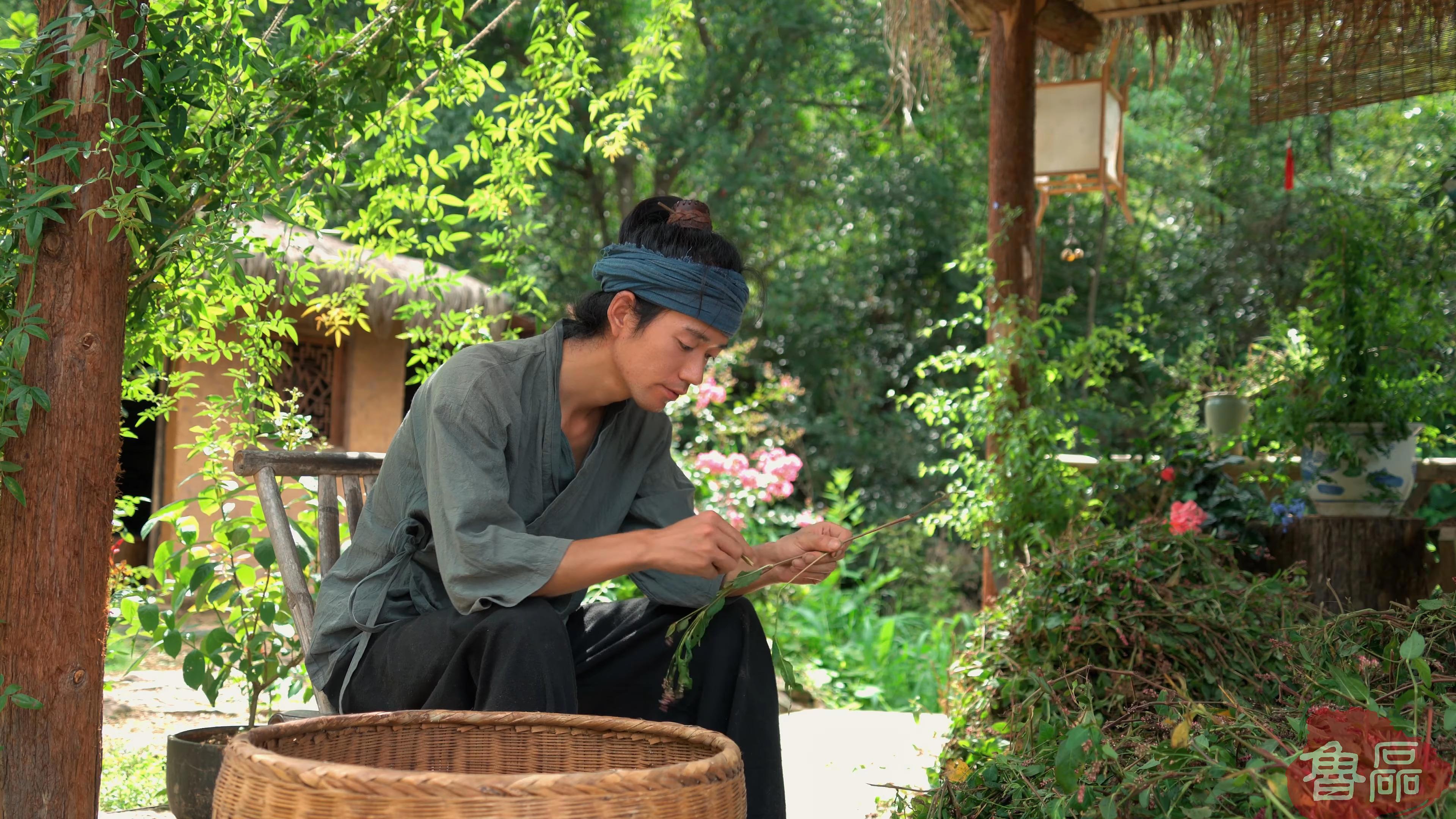 Поэтический юноша, живущий в маленьком домике, заросшем цветами и травой, где-то в юго-восточной Азии интересен нам еще и потому что на нем одежда неподвластная векам и эпохам - шухэ 裋褐, т.е. рубаха и штаны. Китайская рубашка "шань" 衫, крашенная натуральным красителем из травы "лань", потрясающе выглядит на этом скромном, хозяйственном и модном молодом человеке.