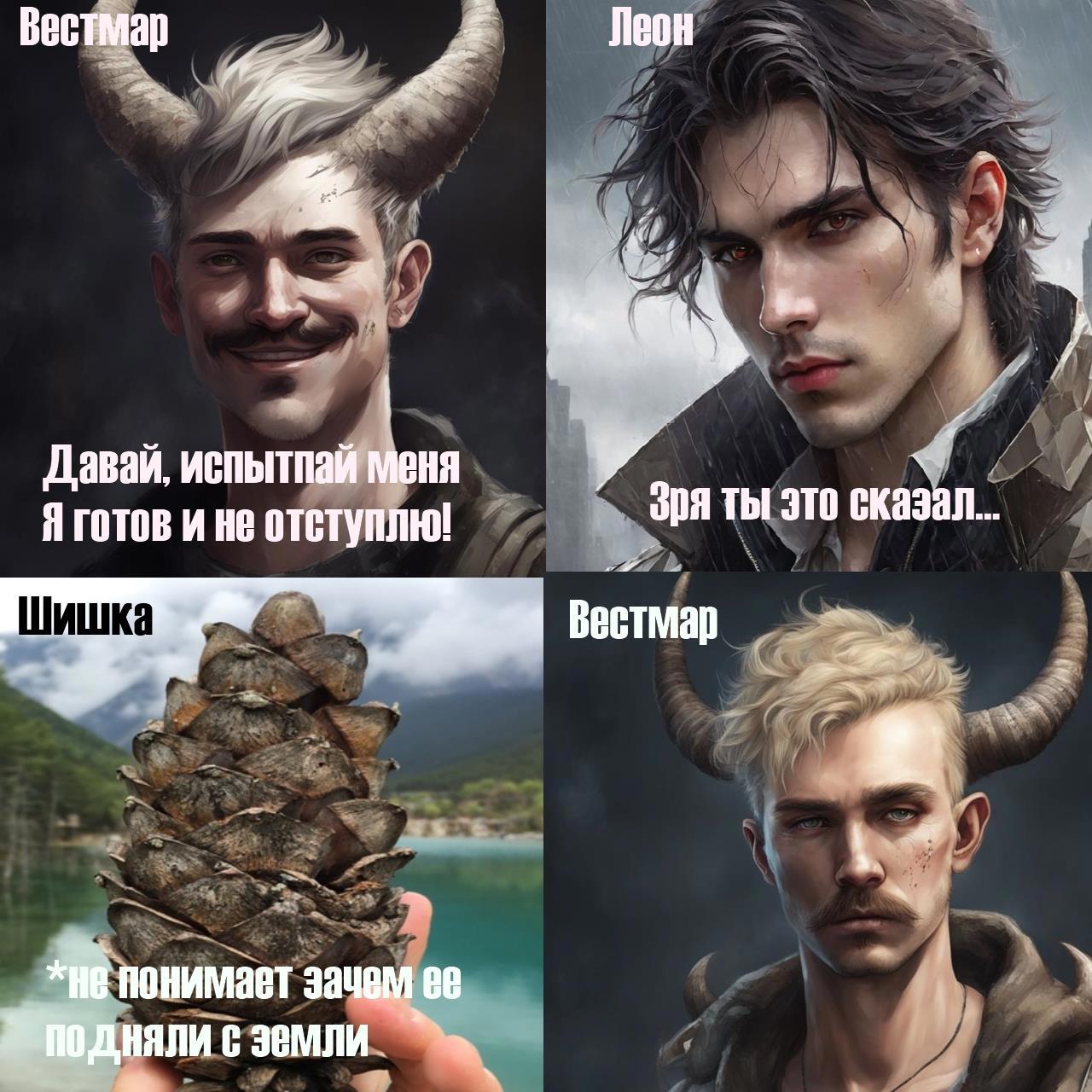 И расскажу о Шишках в своем творчестве)) В романе Рогатая невеста один мутант был готов выполнить любой приказ, чтобы стать слугой вампира и избежать смерти, и тут на сцену вышла шишка... Не подумайте пошлого)) Шишка была сосновой, а вот способ ее применения...