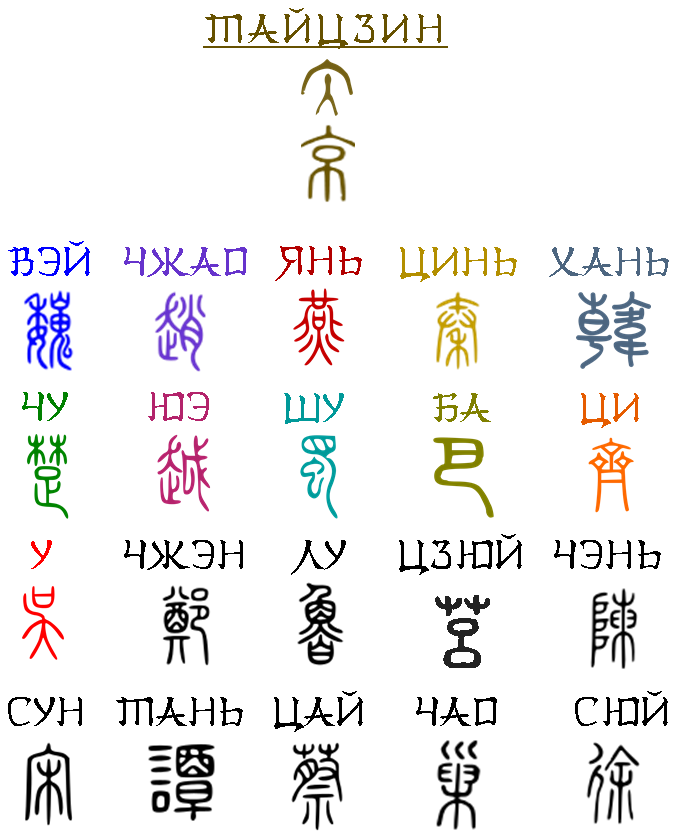 Сюй, Цзюй и Тань по одному крупному городу с деревнями; Цай, Чао и Чэнь чуть больше, в них по паре городов; крупнее прочих Чжэн, Лу и Сун.
