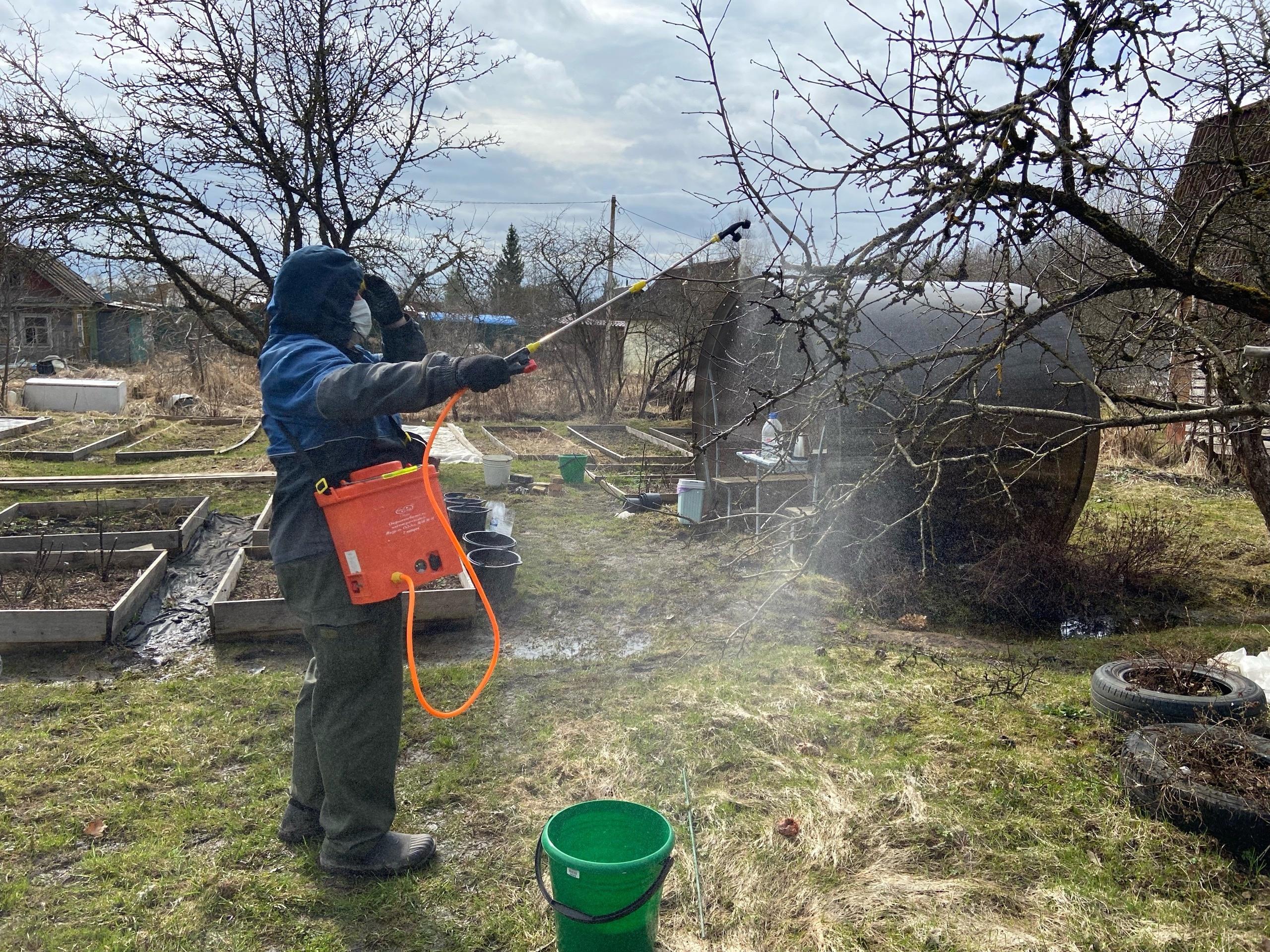2. Традиционный весенний косплей Сталкера - правда, на этот раз без балахона, не нашёл его. Обработали деревья на даче от вредителей: