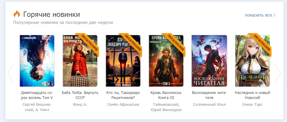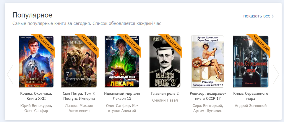 Здесь висят самые популярные книги. Как считается популярность - никто не знает, но она точно коррелирует с часами чтения и продажами. Считается, что для попадания в виджет нужно не меньше 500 часов чтения в день.