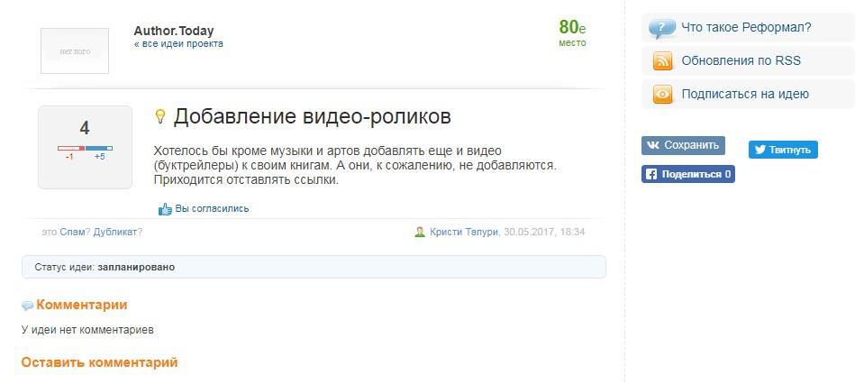 Автор: Серж ТомиловПолгода я ворчал в комментариях насчет отдельной вкладки про буктрейлеры, а предложение оказывается внесено в список и даже запланировано.
