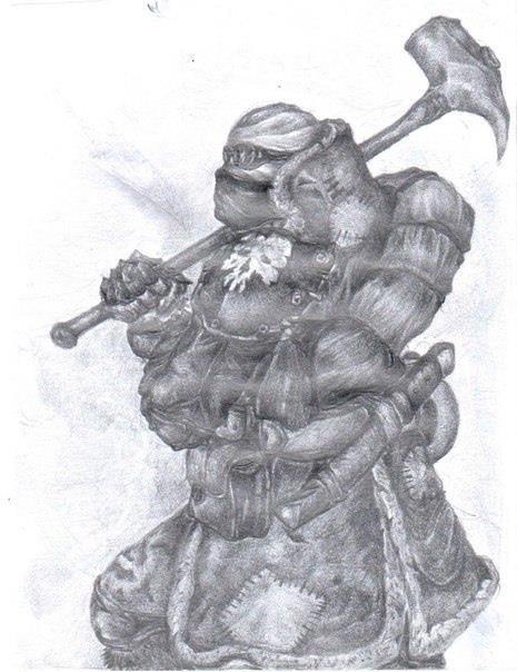 Одетое в невообразимых размеров нечто, сшитое не иначе как из целых шкур двух, а то и трех кабанов. В таких же огроменных чунях, сделанных из парочки подсвинков. На подошвы явно изодрали тракторную покрышку. «Но» было вооруженно охрененных размеров молотом с крюком на верхней его части. И с рожей, замотанной толстыми полосами брезента. И в старых «совковых» сварочных очках. Жесть, в общем, Ад и Израиль, одним словом...