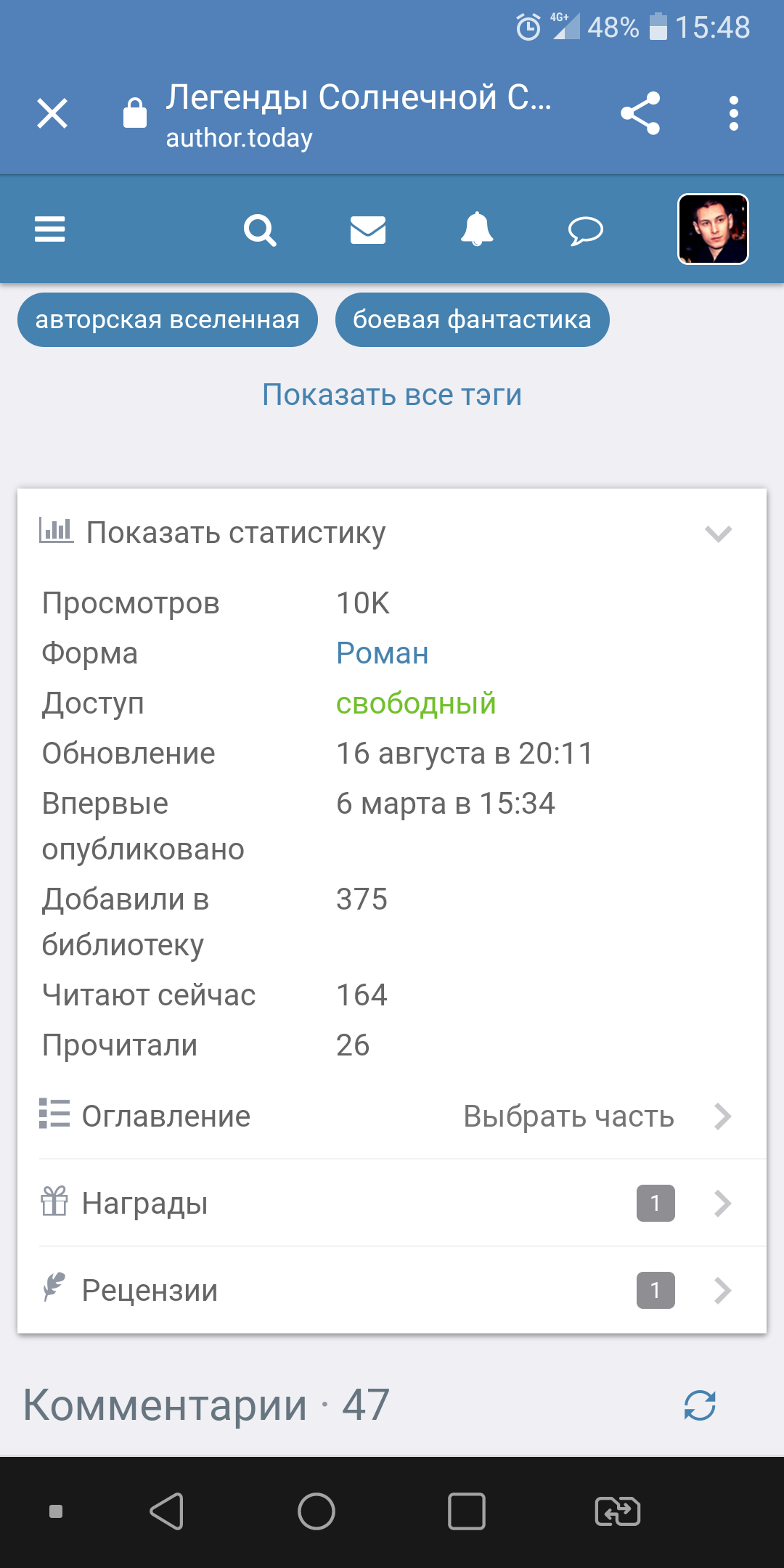 Автор: Серж ТомиловЧуть не пропустил момент, когда цифра перевалила в четырехзначный разряд, добавив роману в графе просмотры заветную букву "k". Вчера или сегодня, уже и не знаю, статистика Легенд в последнее время рвет пределы реальности.