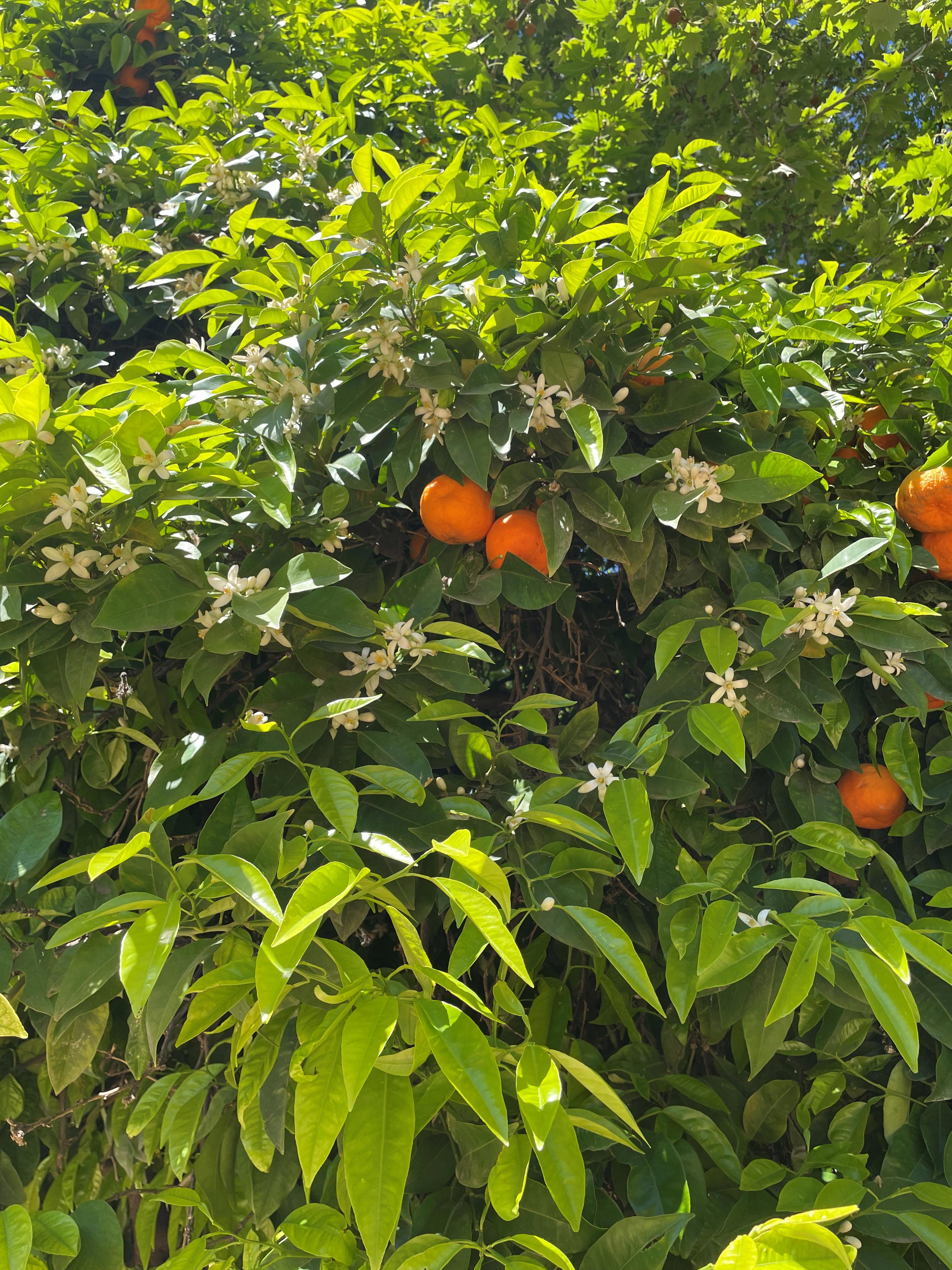 Гранада. ну, что тут скажешь. гранат - ее символ по стечению обстоятельств, я растущих не видела, но говорят, что есть. зато в достатке апельсиновых деревьев - на каждом шагу. вверху старые плоды, внизу - цветы, и флер их запаха (это же вам нероли, флер-д-оранж тоже) при каждом ветерке одурманивает нежной магией чего-то... не из нашего серьезного мира.