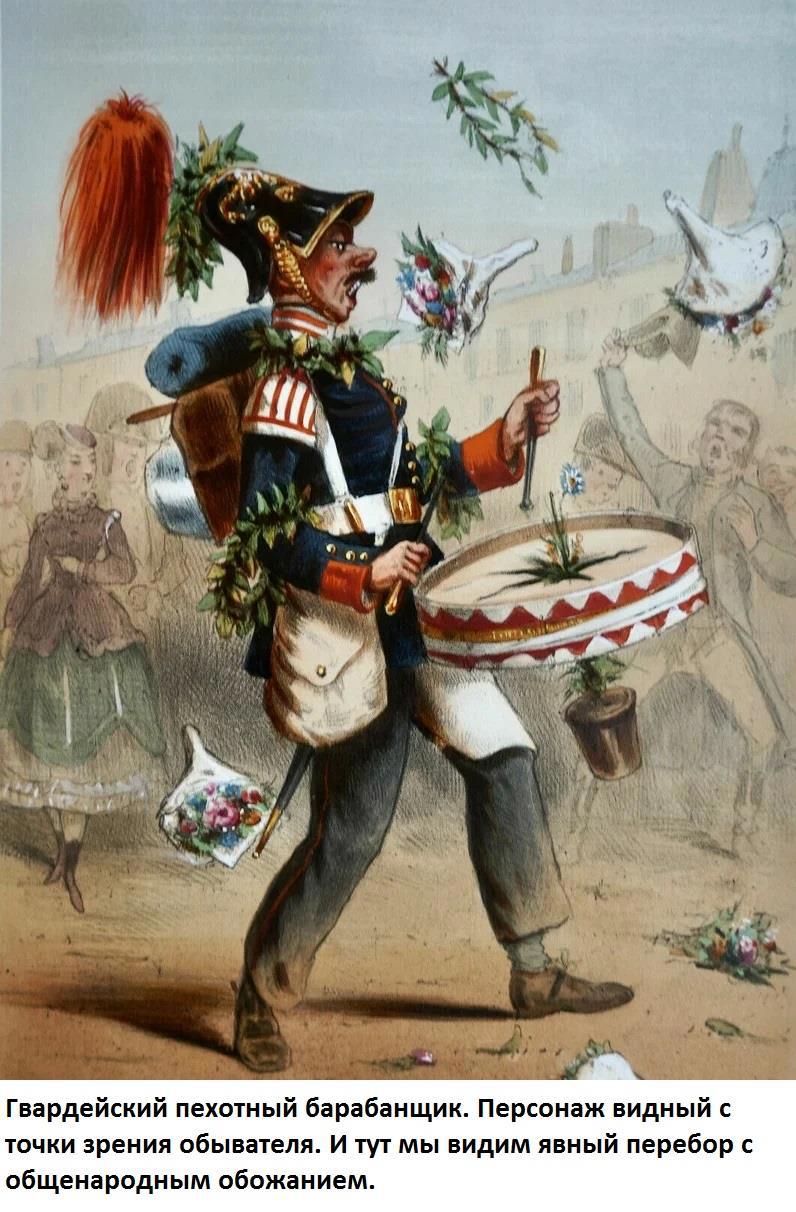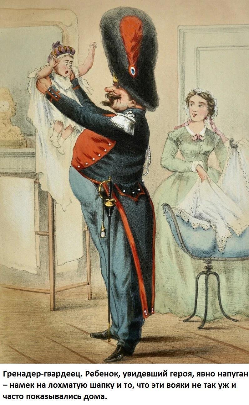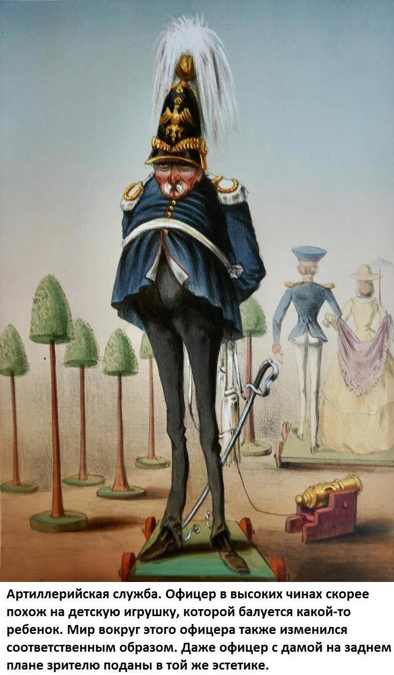 Рисунки эти считаются сатирическими, но при всей своей меткой ядовитости они очень добрые. И это, пожалуй, первый такой яркий и масштабный опыт – до той поры карикатуры на военных если и случались, то отличались памфлетной злобой или изысканной салонностью. А тут все выглядело действительно добрым и почти семейным. Такое беззлобное подшучивание во время дружеской пирушки.