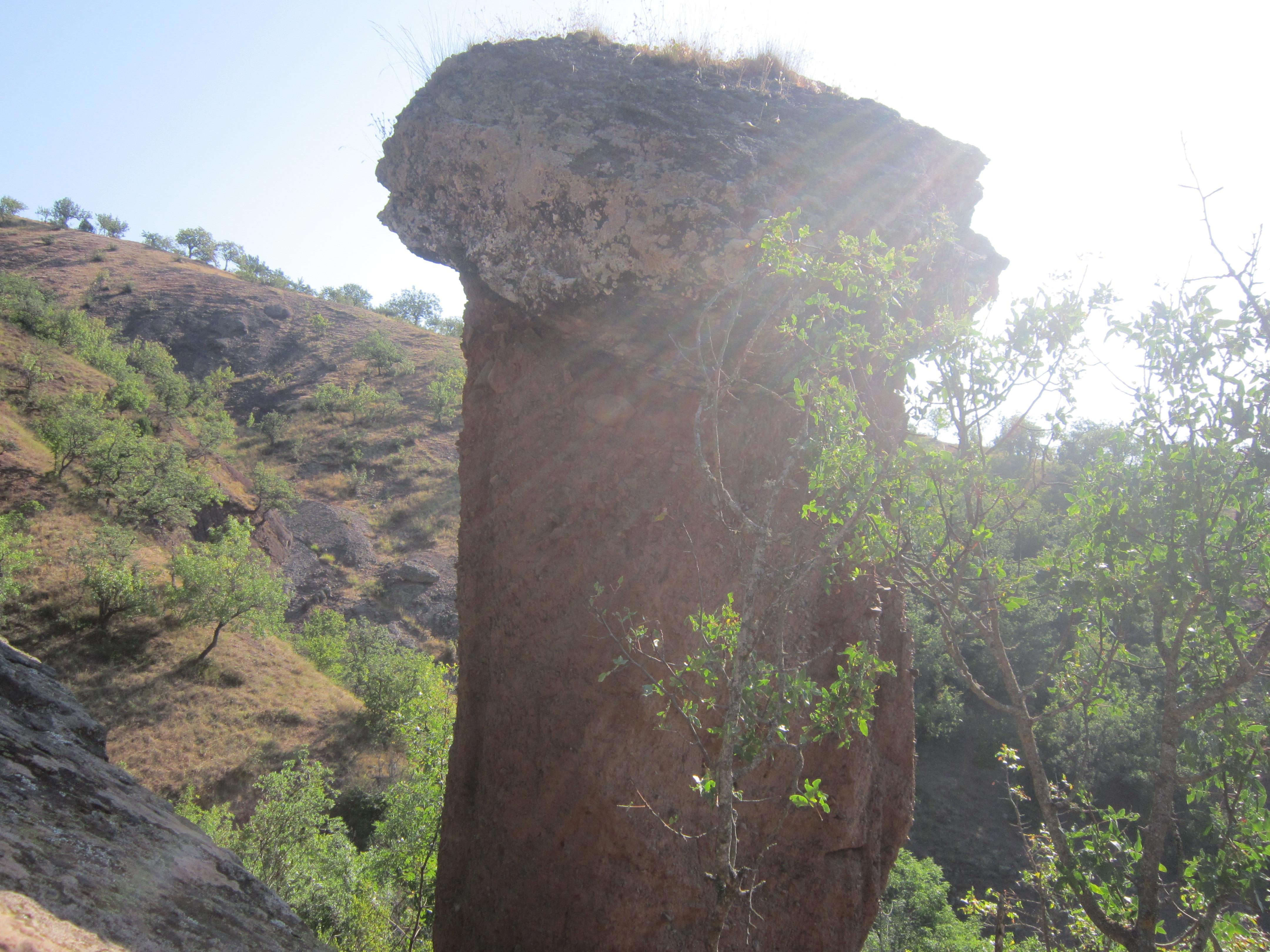 Мы доползли до двух здоровых, каменных глыб странной формы. Временами, мне казалось, что этот вертикальный подъем я не осилю, но присутствие дочери придавало мне сил. У каменных глыб мы отдохнули и даже сфоткались, рискуя каждую минуту просто скатиться по склону вниз.