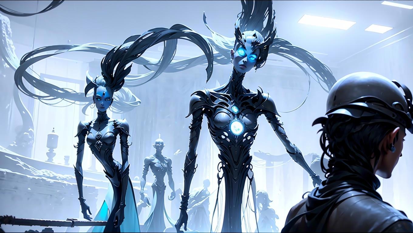 Троица пришельцев соткалась из слоев тумана, будто привидения. Тонкие и высокие, в полтора человеческих роста, в струящихся одеяниях, которые издавали тихую, умиротворяющую музыку. С жемчужно-прозрачной кожей и живыми коронами на головах.