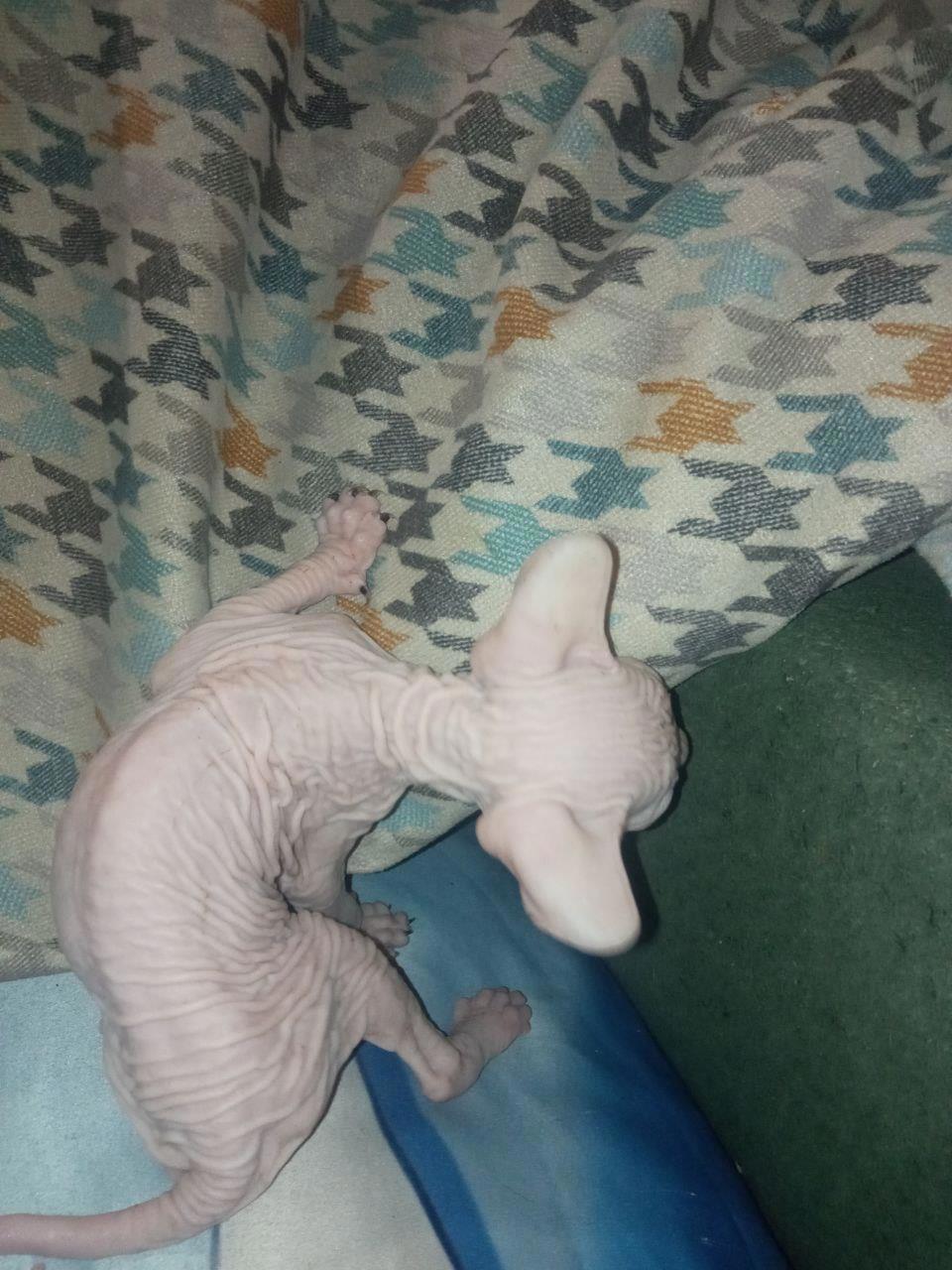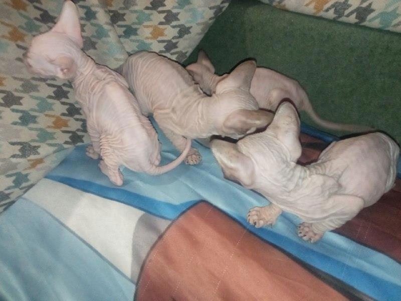 К сожалению, один котёночек не выжил. Это было ожидаемо, сфинксы - мутанты, у них бывает полно врождённых патологий, и нередко бывает, что гибнет весь помёт. Так что четверо живых из пяти, спустя месяц, это хороший результат. Вообще, вырастит сфинксов - это муторно и дорого, они рано открывают глаза, но из-за этого у них они и быстро воспаляются, кошкиного молока им не хватает, нужно кормить специальной смесью, а они склонны к аллергии, могут вдруг покрыться коростой, могут перестать расти, потому что чего-то не хватает или что-то у них не сформировалось, покупать витамины, не спать ночами, уговаривать кошку кормить, потому что кошка у нас дурная, попутно отгонять других котов (а помимо трёх лысых у меня ещё и два мохнатых, хотя, кажется, уже три). Короче, если вы думаете, что разведение лысиков — это такой лёгкий приработок, это не так. Три месяца ухода — никак не пять тысяч расходов, и даже не десять. Так что продажа будет в убыток, как ни крути. Но это всё ерунда, потому что котята — это радость, прежде всего.