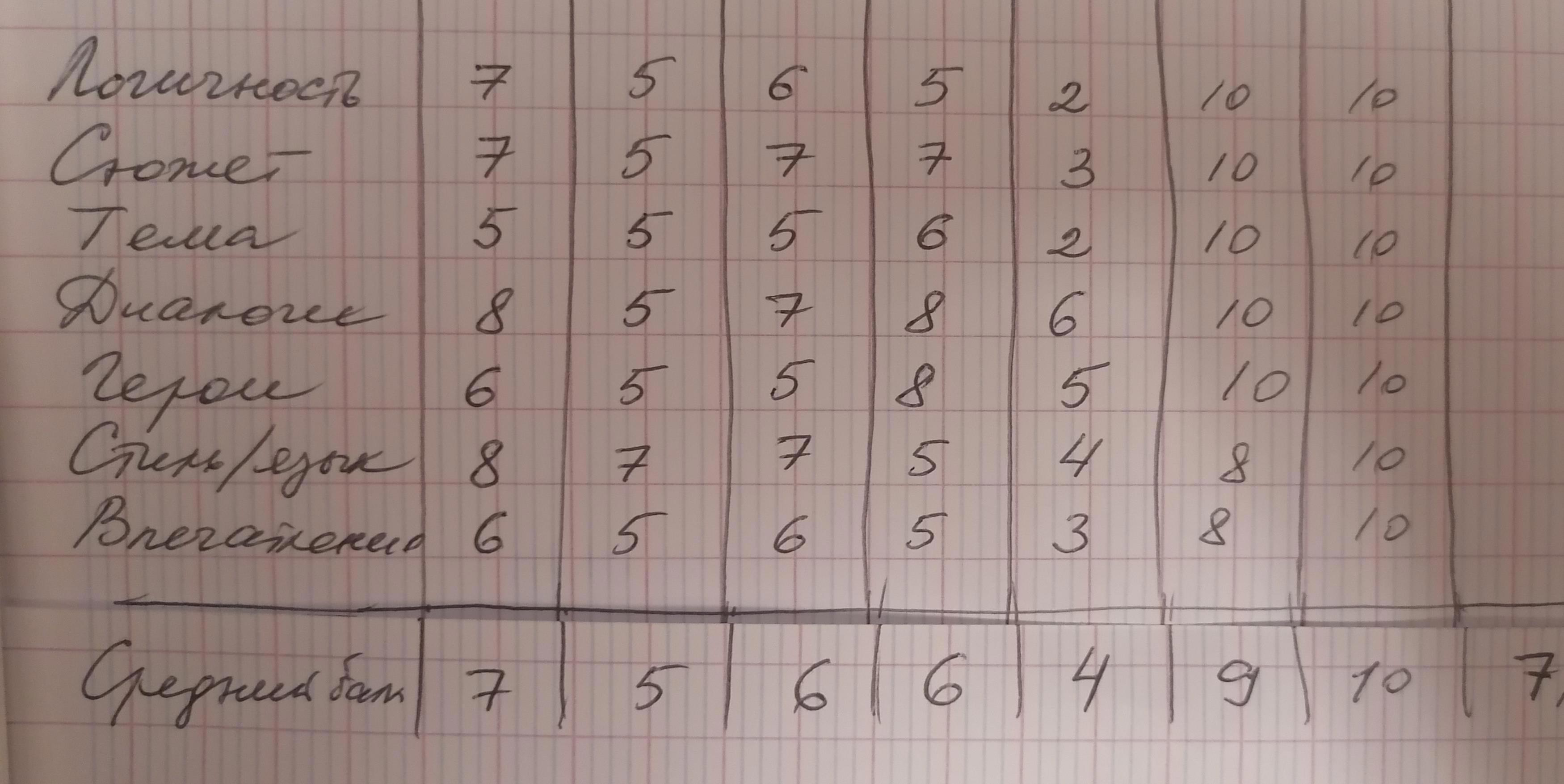 Если резюмировать оценки, то общий балл не так уж и плох: 7 из 10. При этом один отзывант поставил оценки свои/субъективные и чуть выше, как если бы он был целевой аудиторией. Я считала в таблице ниже по самым низким оценкам:
