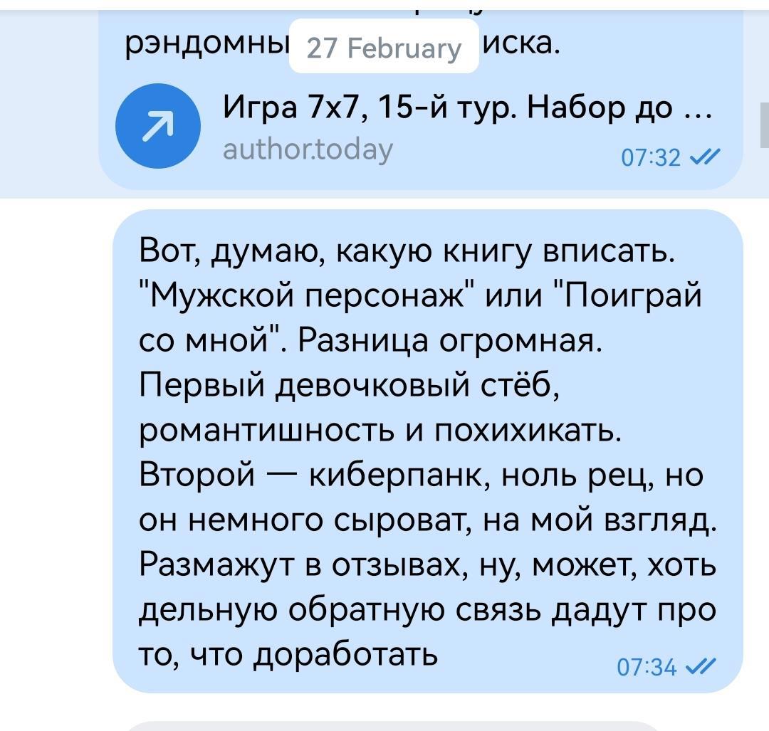 В любом случае, за время участия в 7х7 книга набрала больше десятка лайков, часы чтения, библиотеки... Не знаю, на что именно это влияет, но наверное, это хорошо.