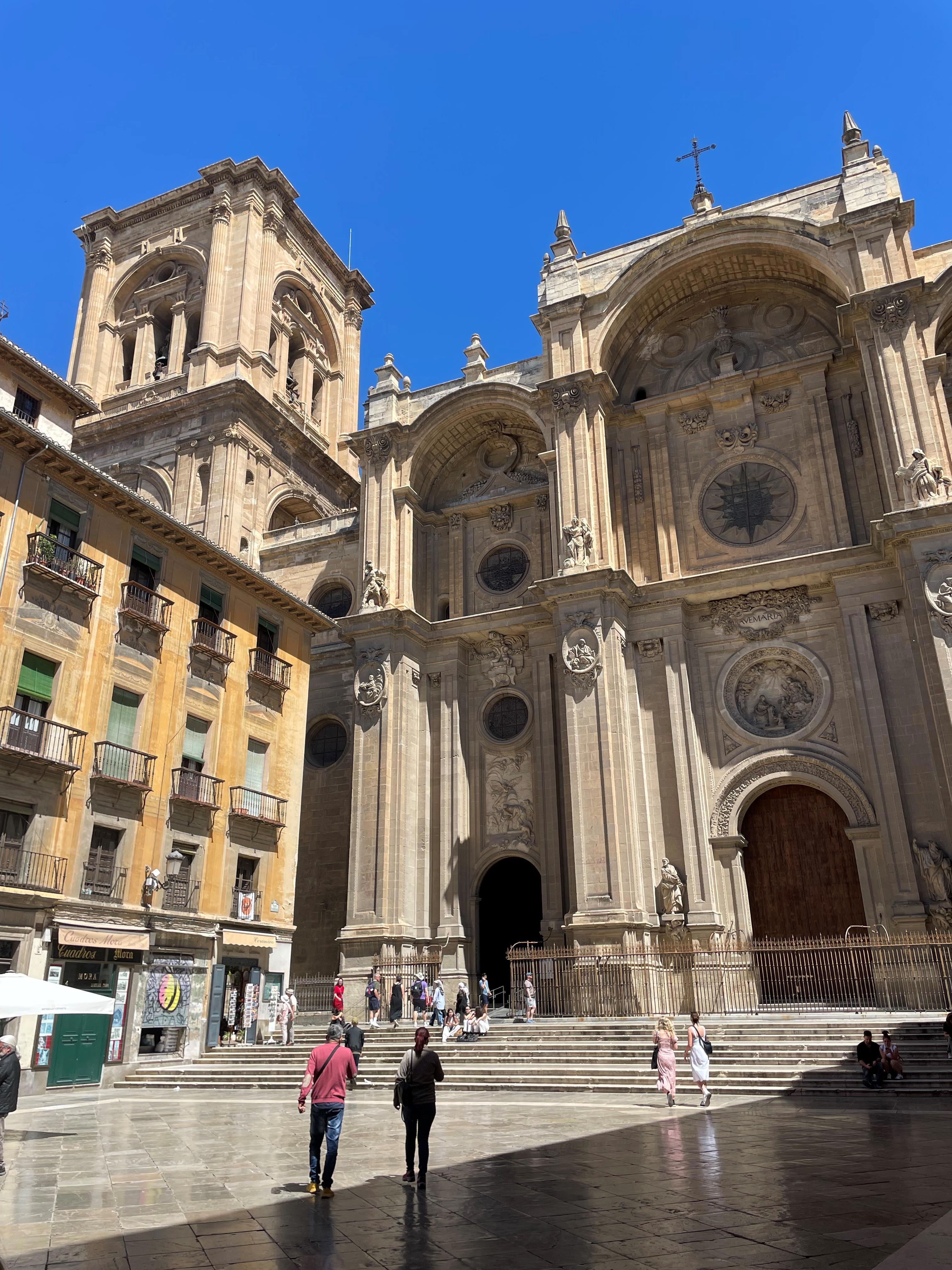 еще покажу только Кафедральный собор, без которого вряд ли какой город обходится. он построен внизу, в центральной части. это эдакий символ того, что Гранада теперь - христианский город. однако, ввиду финансовых затруднений короны, строился он почти два столетия после завоевания Гранады, а потому куча мала архитекторов сотворила его и не в одном стиле. но выглядит величественно, как и полагается, да.