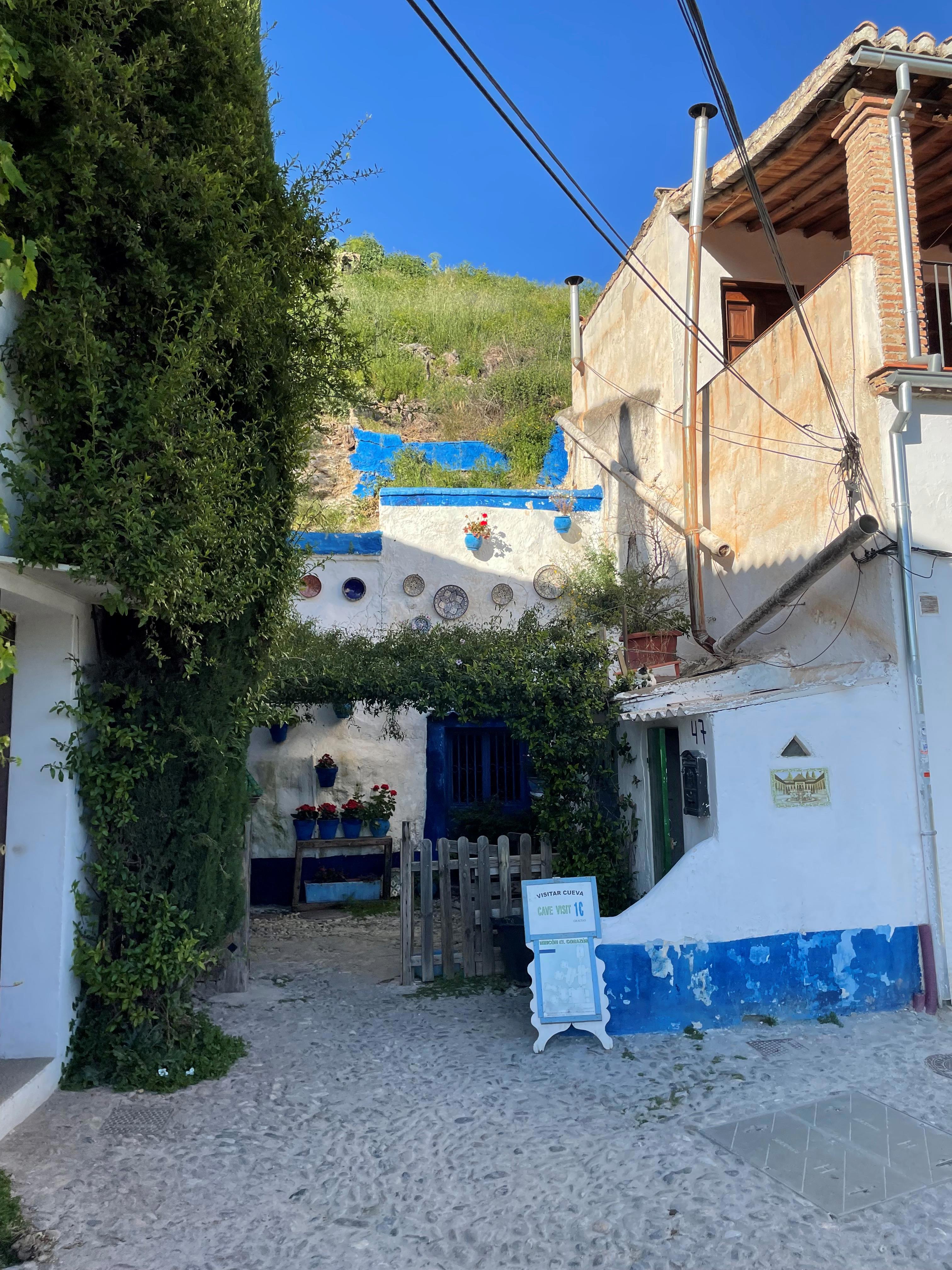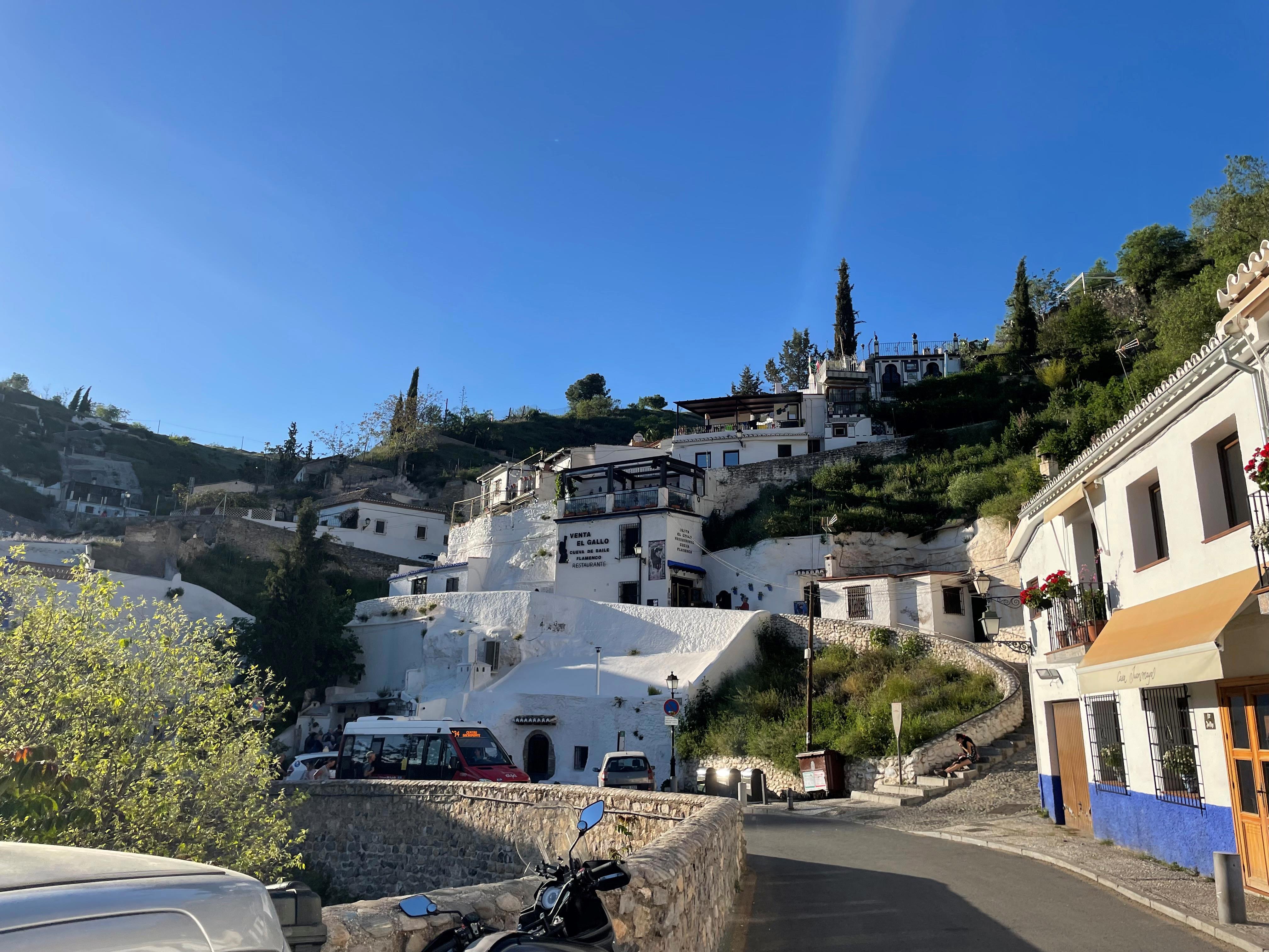 чтобы устроить пещеру, нужно было снять часть холма и рыть внутрь, чтобы устроить комнаты. невероятно, зато ни у кого разрешения не надо было спрашивать. холм создает с холмами Альгамбра и Альбайцин как бы треугольник. а внизу между ними течет река Дарро, одна из трех рек Гранады.