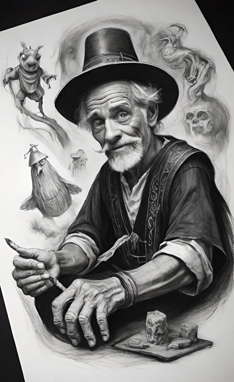 Автор: TatisНавеяно блогом об АТ-мемах https://author.today/post/495032?c=25456961&th=25456961 и в итоге игры с нейросетью набралась подборка картинок поста на три ) но пока один - про писателей и их творения: