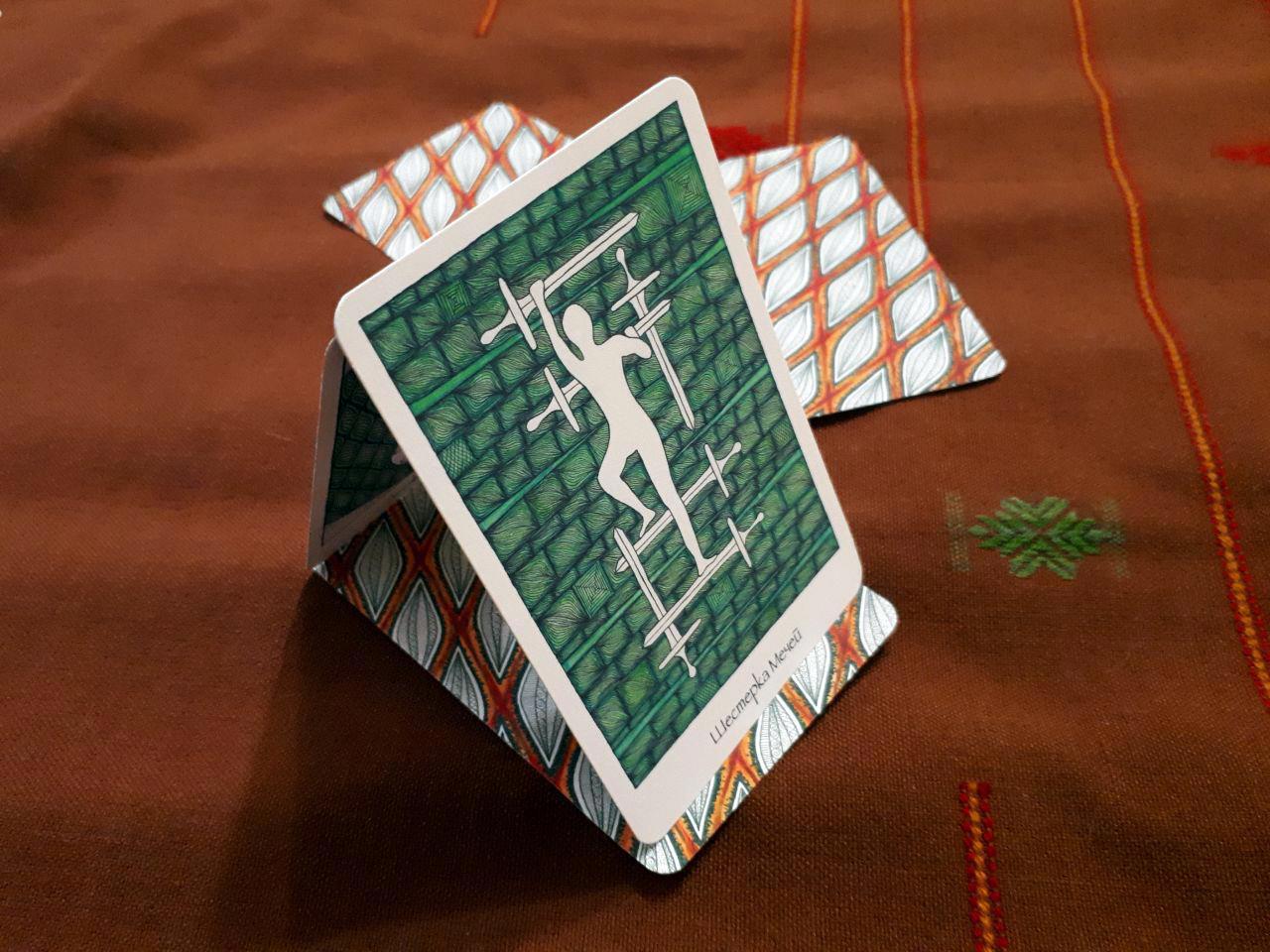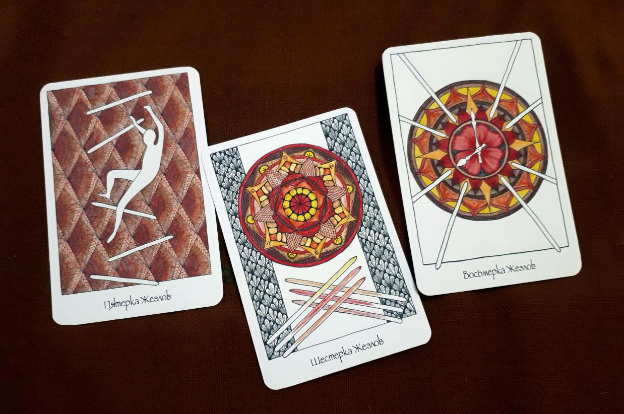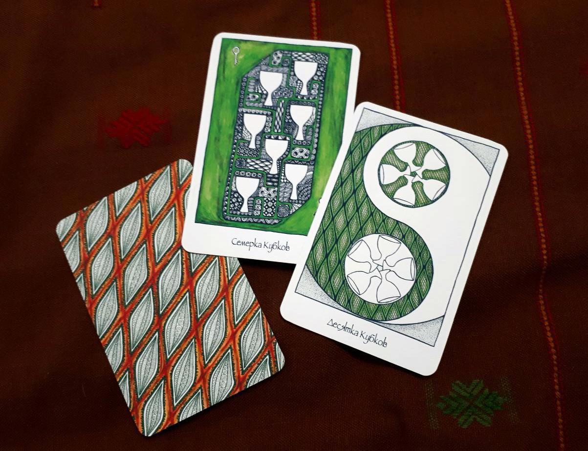 Как бы то ни было, МФУ мне здорово помогает в работе над колодой, и с боем я выбила у него готовые карты - проверить, как будут смотреться. Ну и любоваться-вдохновляться, чего уж там...