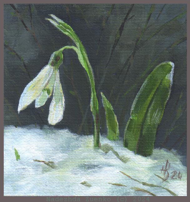 2. Подснежник. Акрил, 10*10см, покрытие лаком: