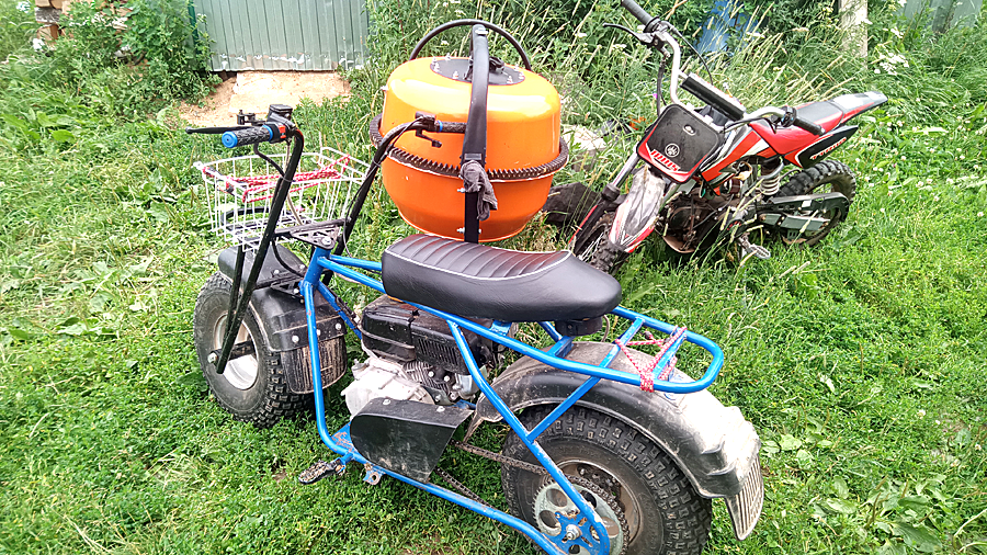 Мотовездеход - прет там, где на эндурике не проехать, все же мотор у него низкооборотистый, от мотоблока. Может тащить за собой прицеп с 500 кг груза.