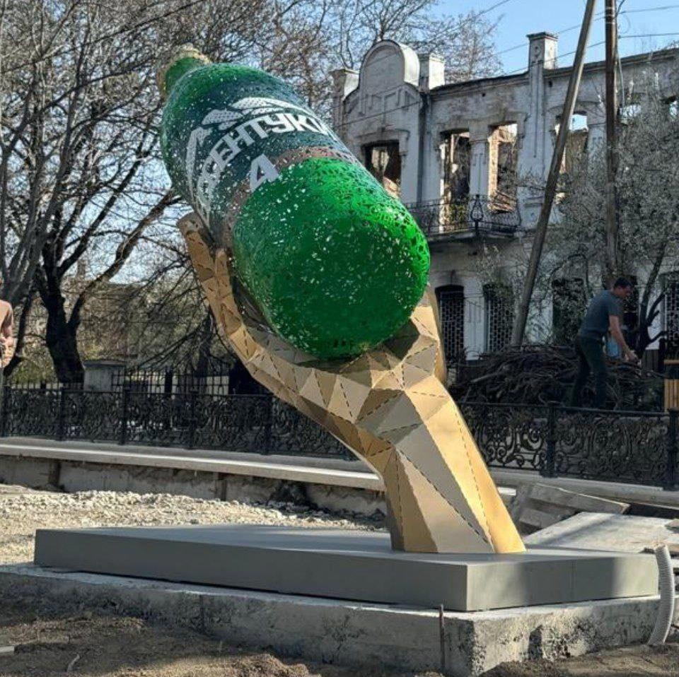 А вот 14 апреля мэрия сделала подарок ессентучанам. И у входа в старинный парк, в котором все выдержано в классическом стиле установили новый Арт-объект. Так и сказали. Арт-объект. Потому что скульптурой такое назвать как-то сложно.