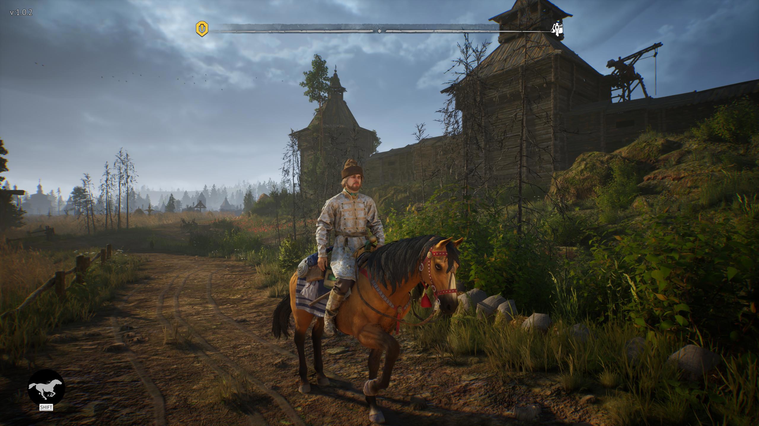 Следующая проблема – невероятная недружелюбность проекта. Разработчики, такое ощущение, специально постарались сделать Смуту предельно злой по отношению к игроку. Тут нет столбов фаст-тревела, но скакать галопом всегда и всюду не получится: завидев врагов, лошадь сбросит нас с седла, когда настанет ночь, вообще откажется служить боярину, в городах и деревнях она идёт чуть ли не шагом.