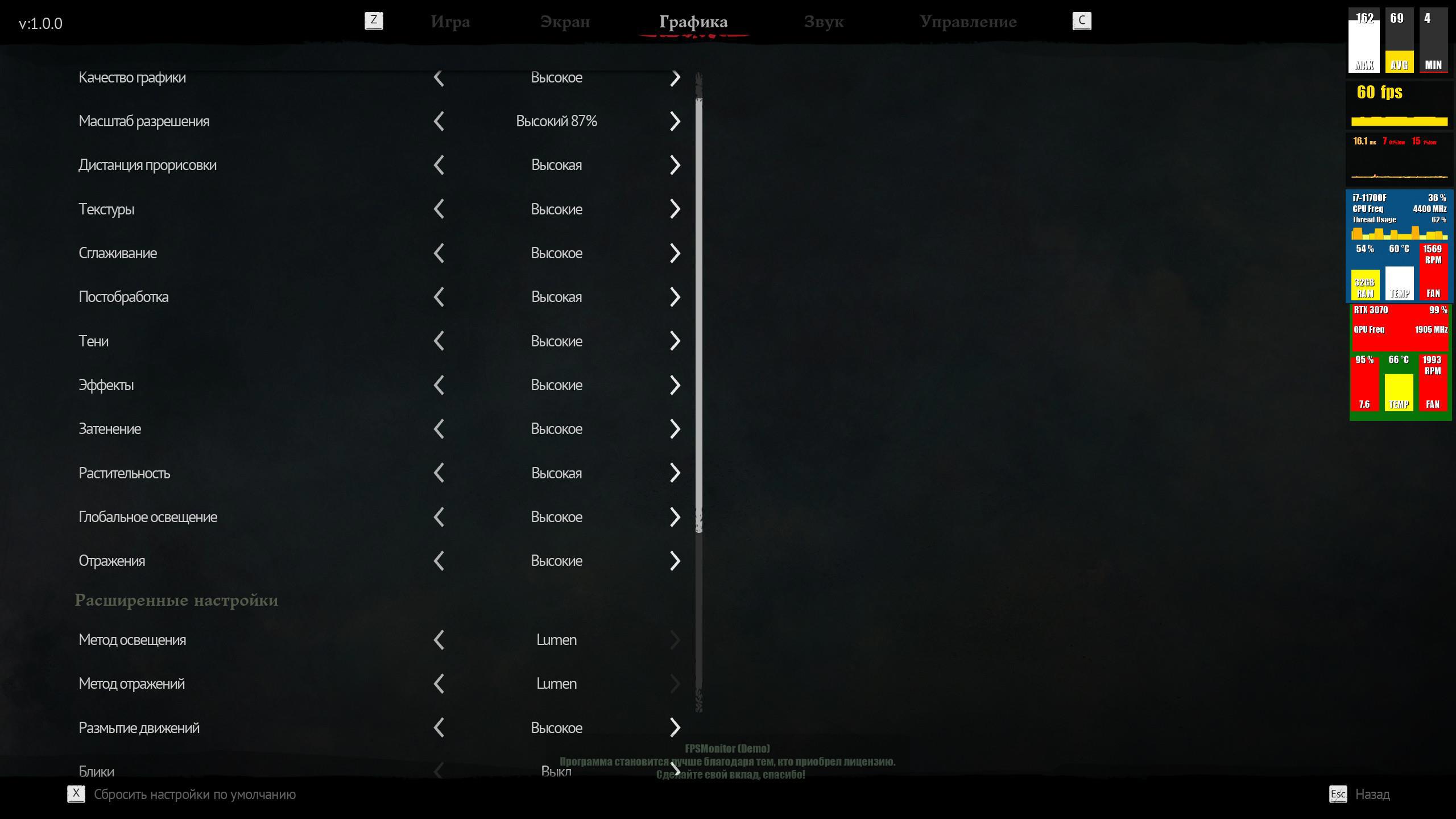 И с ФПС всё было плохо. Нет, когда ставил среднюю графику, игра выдавала под 90 ФПС (в стартовых локациях), более того, на первых картах 60 ФПС держались и при настройках со скриншота.