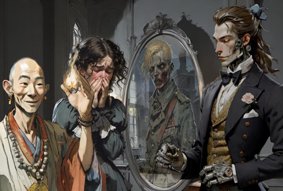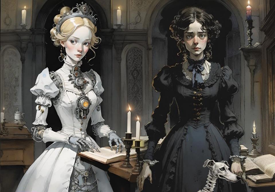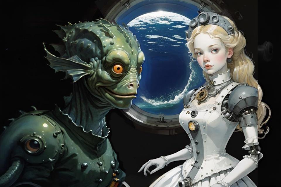 Ну и хвастаюсь новыми картинками. Способ создавать иллюстрации, обрабатывая в нейросети эскиз, нарисованный руками, оказался совершенно беспроигрышным. Так можно изображать даже очень сложные сценки, где много персонажей со сложным и оригинальным внешним видом, да ещё и с разными эмоциями. Сгенерировать по промту нельзя - а по эскизу можно!