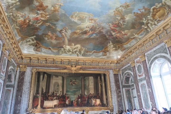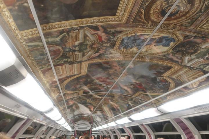 Покупаем билеты и едем в Версаль на замечательном двухэтажном поезде с потолком, украшенном изображением Версаля, что создаёт соответствующее настроение.