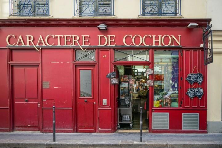 Caractère de Cochon - Свинский характер - только заглянули- великолепное и поражающее обилие копчёностей и других свинских продуктов - планировали вгрызться в такой "мясной букетик”, но в желудок уже ничего вместить не можем.