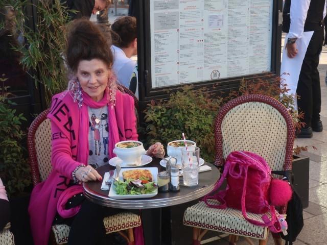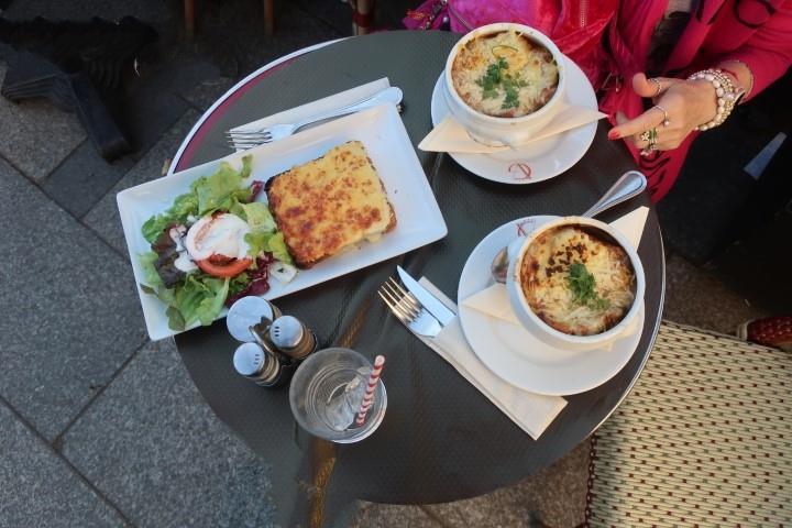 А мы садимся подъесть немного - побывать в Париже и не попробовать лукового супа -фи! Суп неожиданно для меня очень вкусный и состоит не только из воды, пряностей и лука - в нём плавает хлеб и очень много сыра.