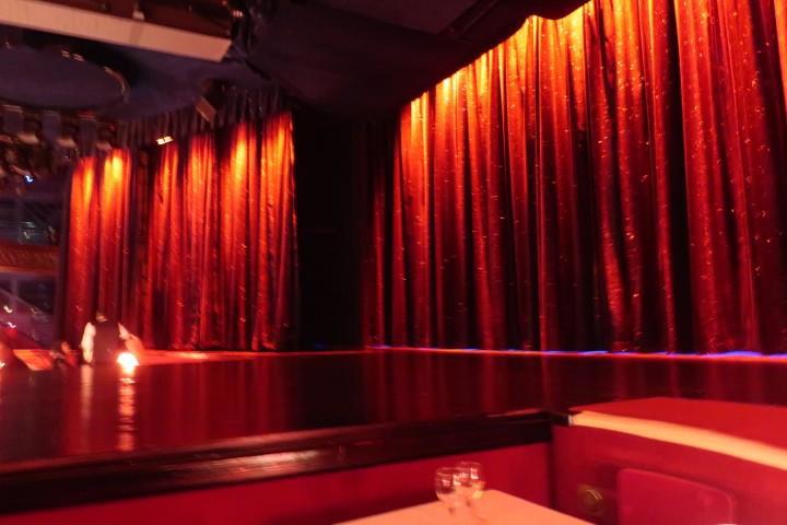 Однако, это обеспечило нам место у самой сцены. Народ валил валом, пришлось постоять в очереди, пока попали в зал. Нарядный, приветливый, в безупречном костюме с бабочкой распорядитель провожает нас к нашему столу. Официант приносит ведёрко со льдом и бутылкой шампанского, наливает мне чуть-чуть, и ждёт, что я одобрю наливание нам обоим.