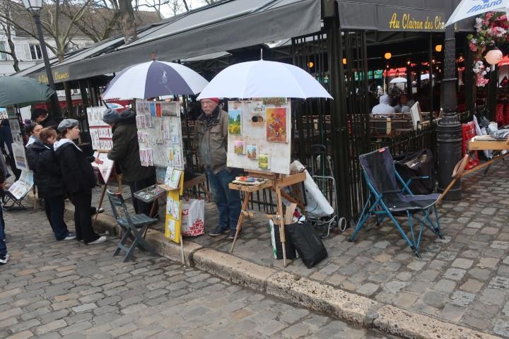 А наверху Place du Tertre на Монмартре, которая сегодня заполнена художниками, магазинами и кафе; мы видим ту самую площадь, которая вдохновила Моне. Он часами сидел на площади, ожидая вдохновения. А значит и нам тут присесть не грех.