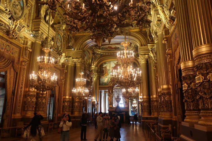 Замечательное "золотое" фойе с огромными зеркалами, сверкающими люстрами, расписными потолками первоначально было доступно только для мужчин - представления длились по четыре часа, и в фойе можно было "передохнУть". Как-то раз женщины устроили демонстрацию, после которой получили доступ в Grand Foye.