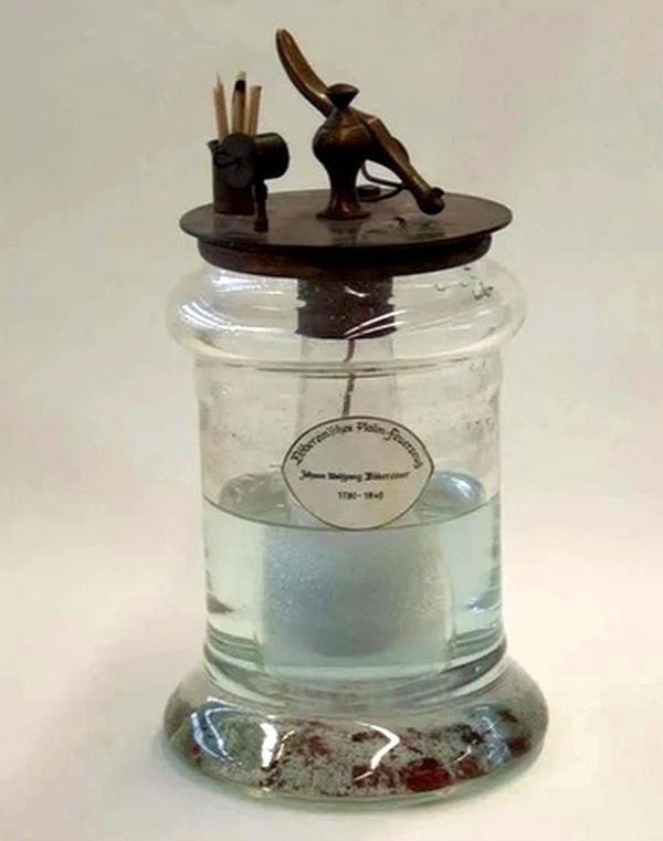 Между тем интрига нарастала. В 1823 году германский химик Иоганн Вольфганк Доберейнер явил миру первый прототип зажигалки, причём сразу газовой. Она известна сейчас под названием «лампа Доберейнера». В качестве горючего в ней использовался водород, который получали в результате реакции между цинком и всё той же опасной серной кислотой. Плохая игрушка – в кармане не потаскаешь. Вот так выглядел этот предмет: