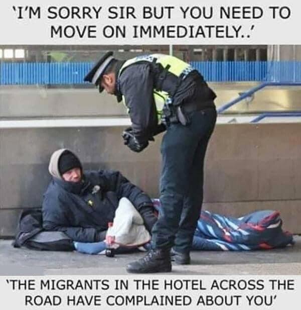 Извините, сэр, но вам надо отсюда уйти немедленно. Ваш вид шокирует мигрантов в отеле напротив!