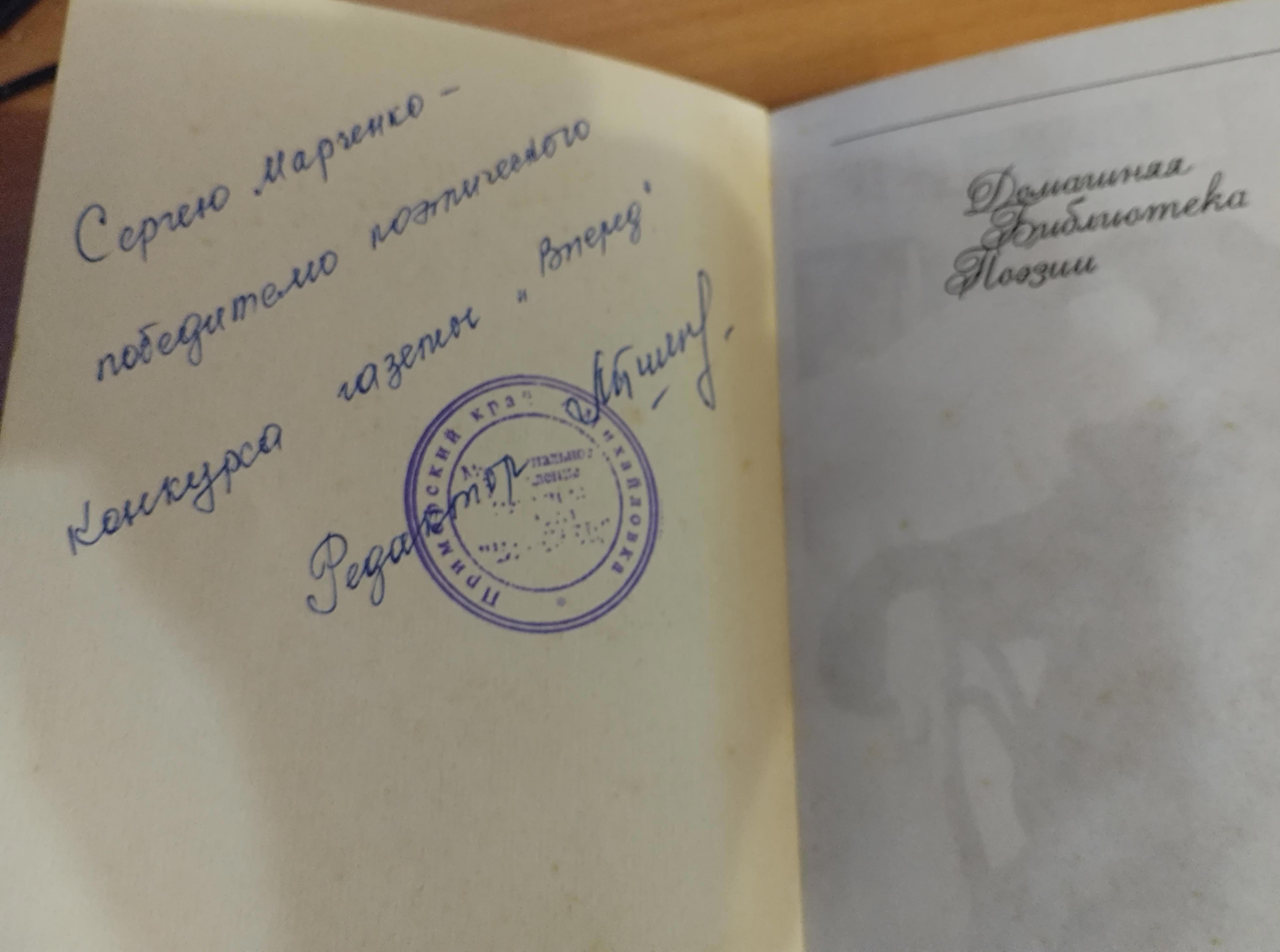 Стихи заняли первое место и мне подарили томик стихов Анны Ахматовой "Лебединая песня".