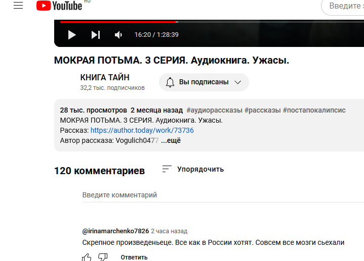 Автор: Vogulich0477Совершенно внезапный комментарий к аудио-версии "Мокрой Потьмы"