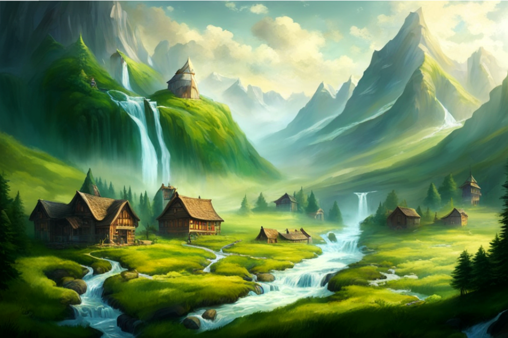 Фэнтези город и деревеньки от нейросети. Когда пытаешь воссоздать локации из своих сюжетов. Меня, например, даже просто просмотр таких картинок очень вдохновляет продолжать работать над книгами.