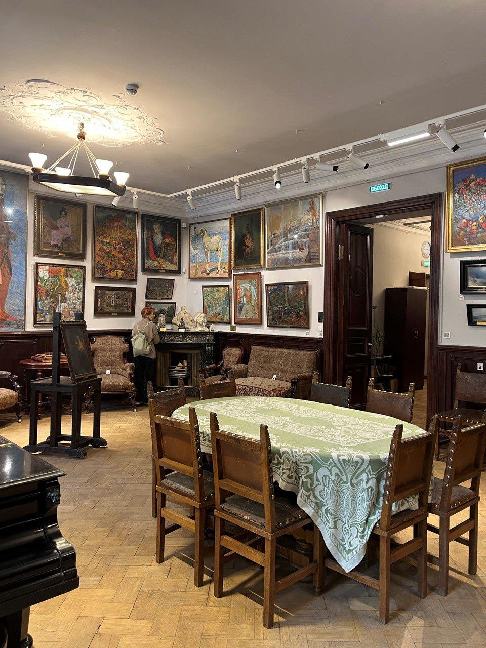 На первом этаже дома располагается столовая. Помимо того, что Исаак был художником, он также коллекционировал картины своих современников. Сейчас его коллекция и собственные картины украшают стены музея.