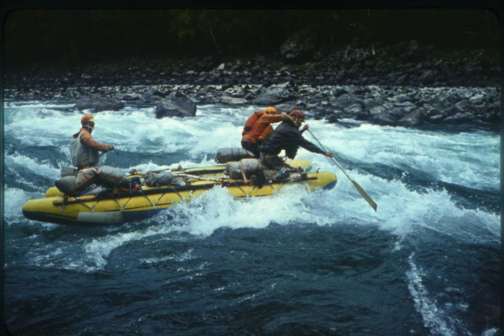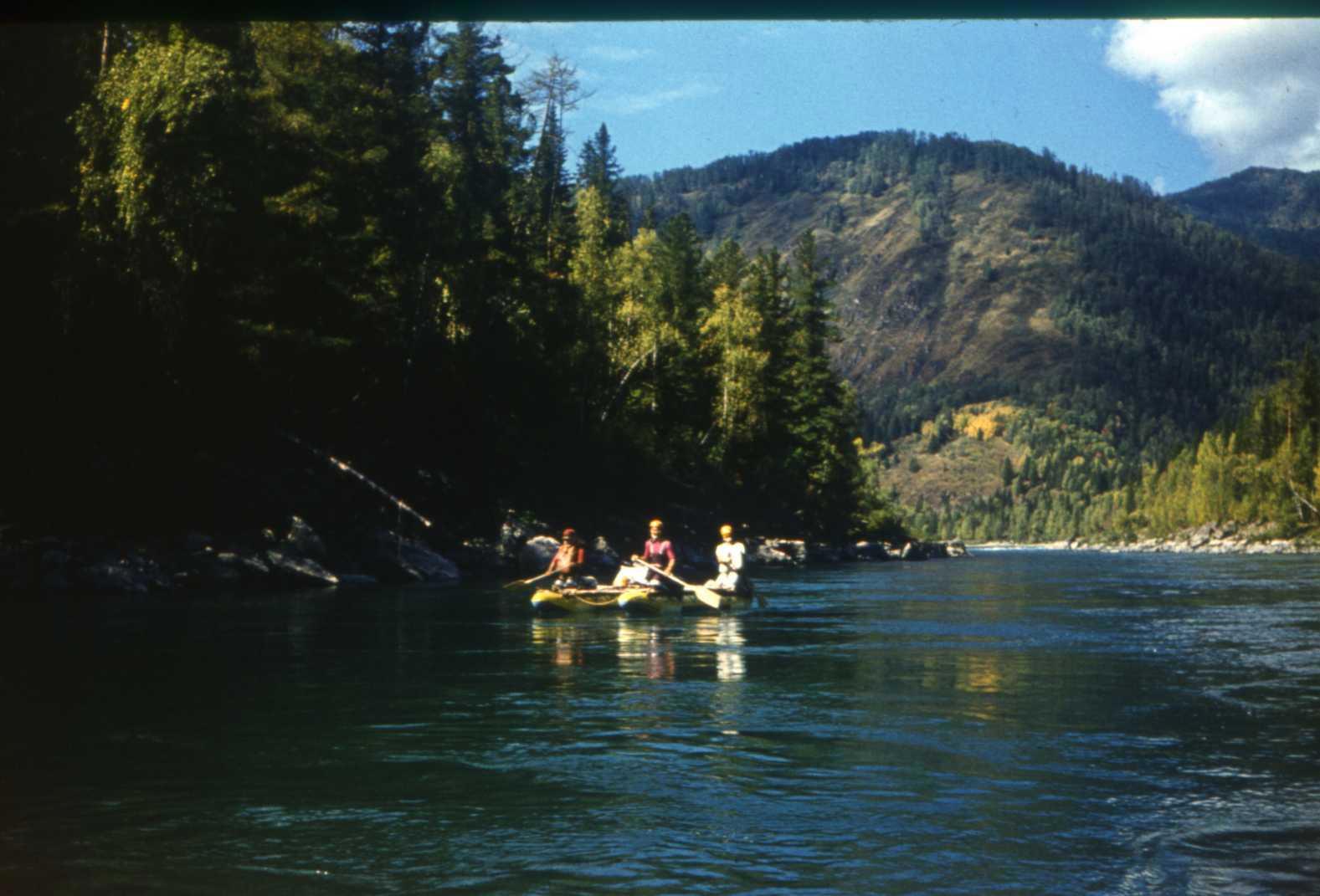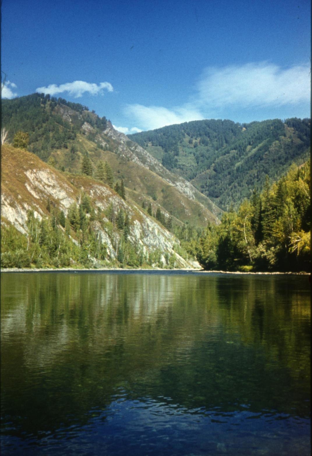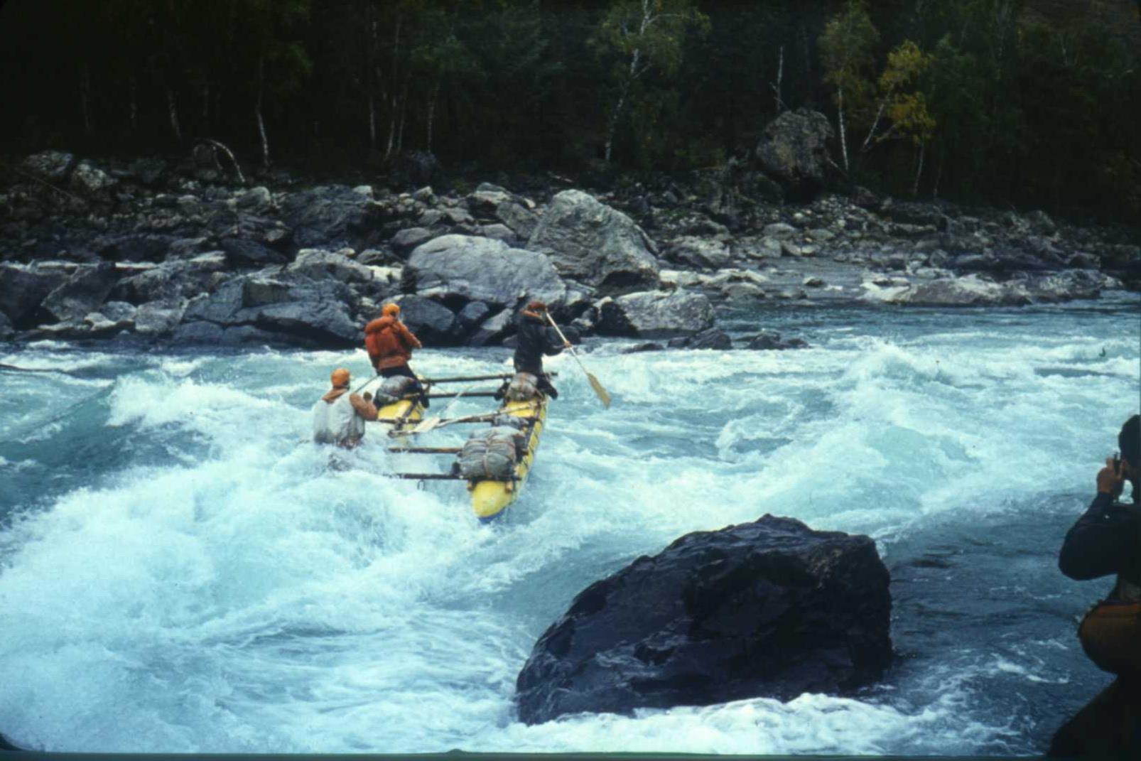 Да и условия для фотосъемки не всегда были комфортными, мягко выражаясь. Наша группа туристов-водников решила тогда познакомиться с Алтаем, пройдя на катамаранах среднюю и нижнюю Катунь. Катунь – мощная горная река, пронизывающая всю эту красивейшую горную страну. Особенно сложные пороги сосредоточены на нижней Катуни – «Аккемская труба», «Ильгумень» и другие. Сплавлялись на двух четырехместных катамаранах. К сожалению, один из предполагавшихся участников не смог выехать с нами, так что нас осталось семеро смелых