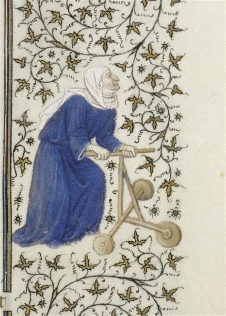 Но посмотрите на эту книжную миниатюру. Рубеж XIV-XV веков -- ходунки для пожилой женщины. И это не единственное изображение. А вы говорите ХХ век. Все новое, это хорошо забытое старое.